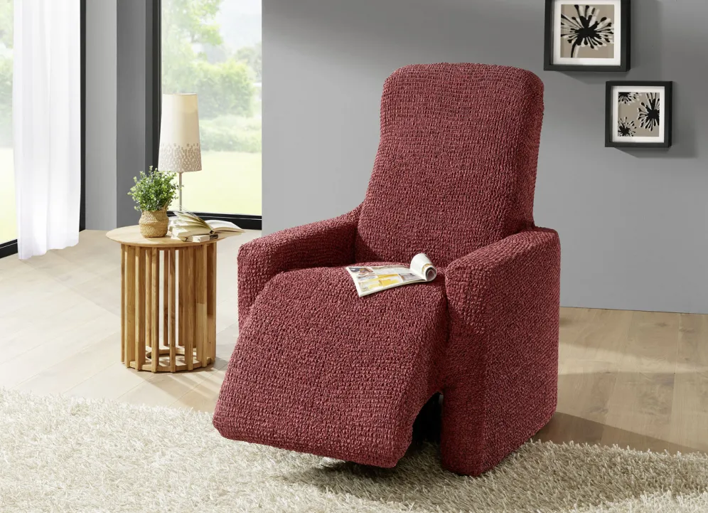 Pflegeleichte Stretchbezüge in Mikrofaser-Qualität in Größe 106 (Stuhlbezug) und in Rot.