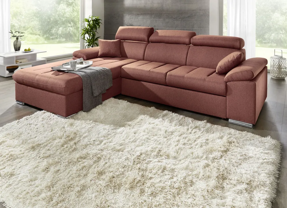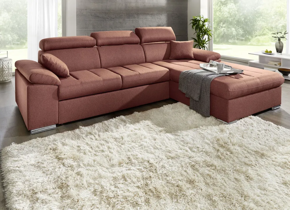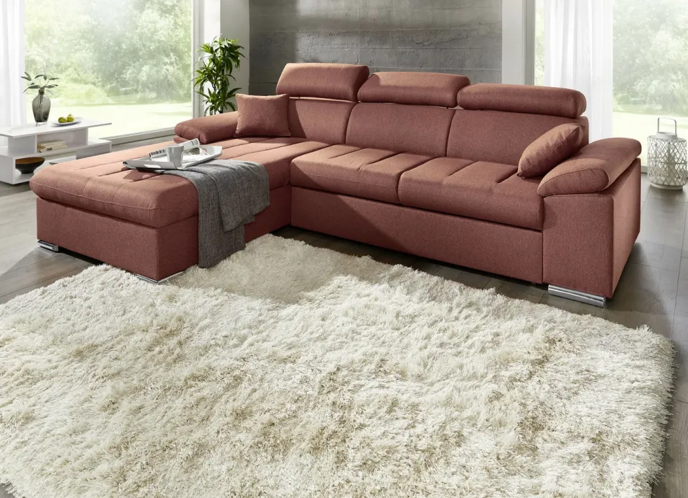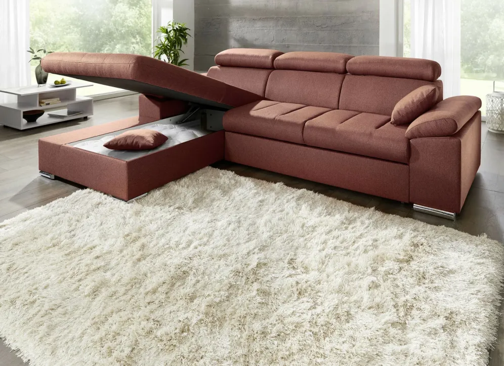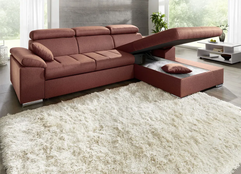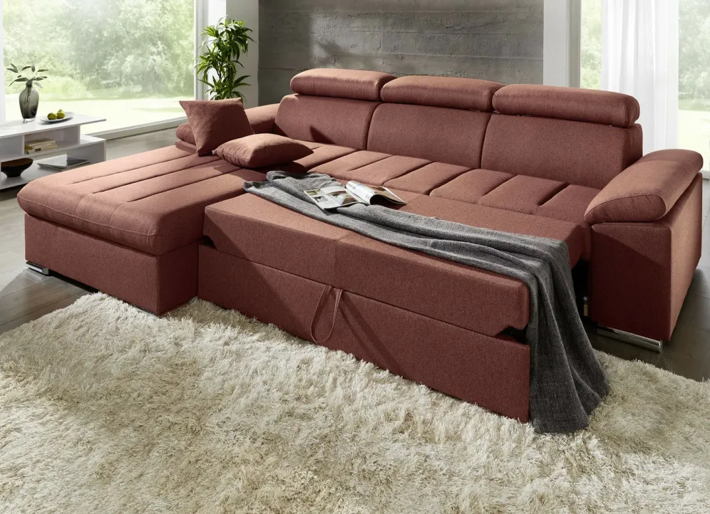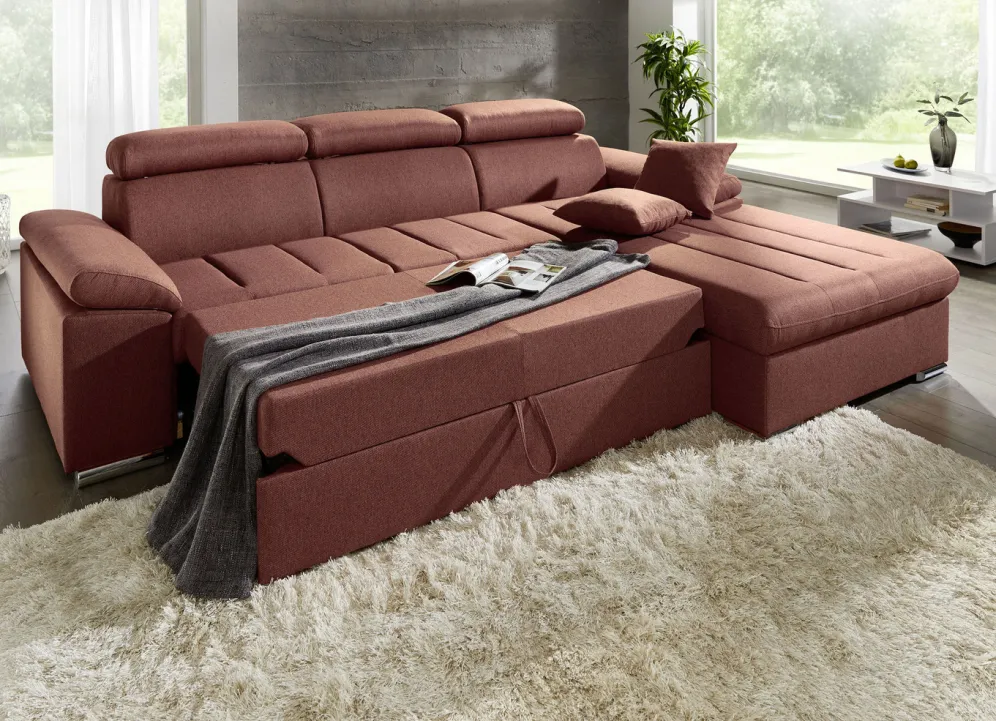 Polsterecke mit Bettfunktion in den Maßen 192×273 cm und in Terra.