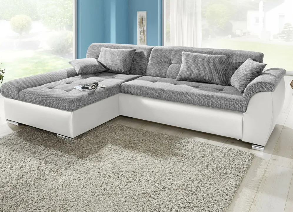 Polsterecke mit Bettfunktion in den Maßen 170×286 cm und in Weiss-Silber.