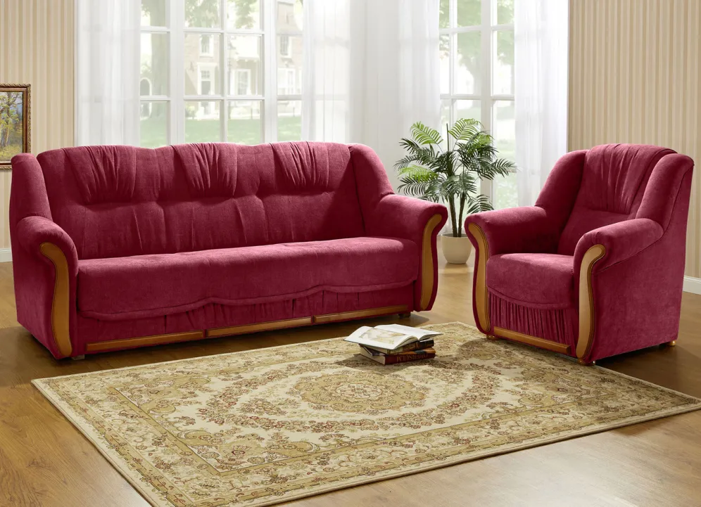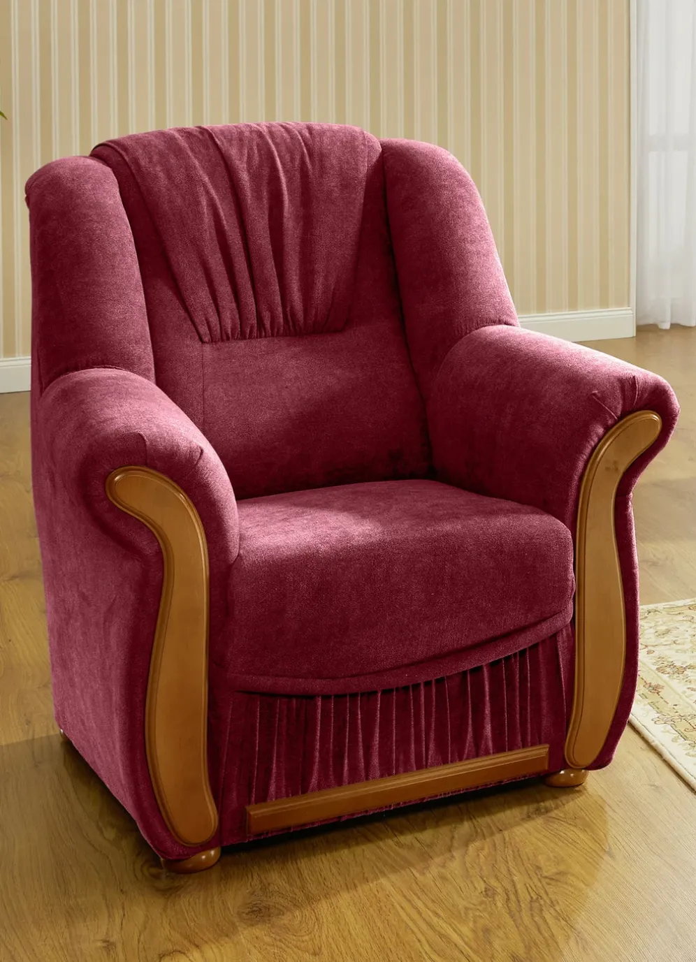 Polstermöbel mit angenehmem, hochflorigem Stoffbezug in der Ausführung Sessel und in Rot.