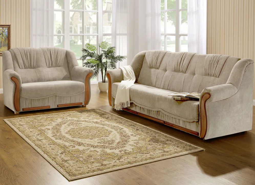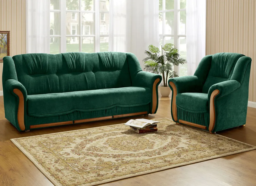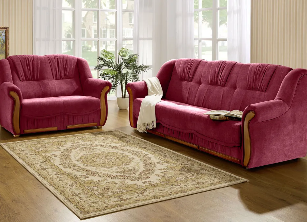 Sehr gemütliche Polstermöbel zum Entspannen und Wohlfühlen! Auf stabilem Holzgrundgestell, mit hochwertigem Bonellfederkern und Komfortschaum-Polsterung gearbeitet sowie mit angenehmem Stoffbezug (100% Polyester) versehen.