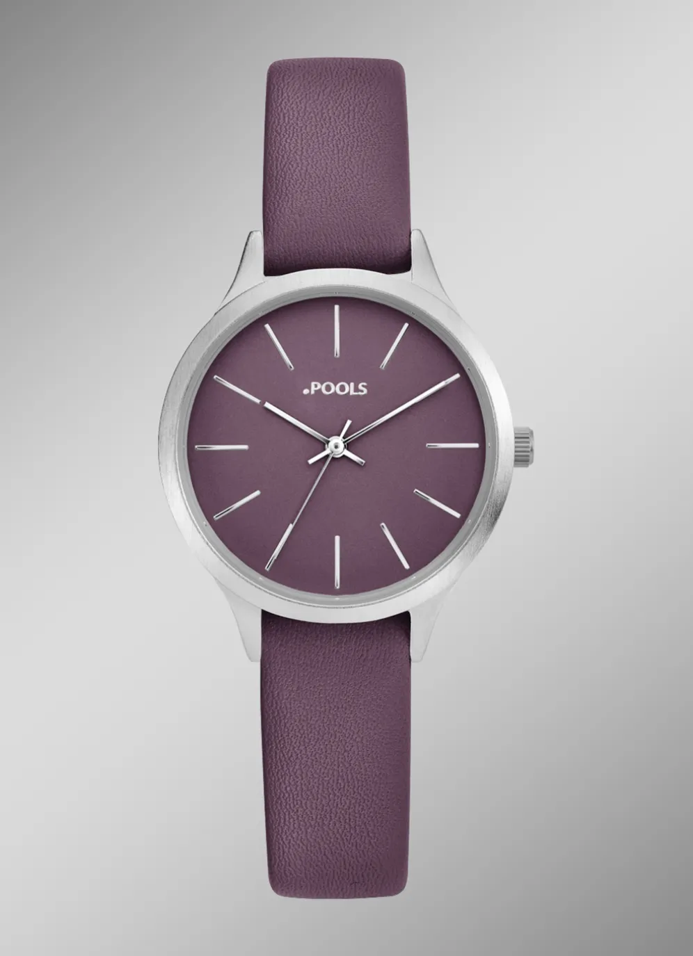 Diese stilvolle Damenuhr verbindet klassische Schlichtheit mit modernen Akzenten. Das schlanke Gehäuse aus robustem Metall mit einem Durchmesser von 34 mm sorgt für einen eleganten Auftritt und liegt angenehm am Handgelenk. Das auberginfarbene Kunstlederband unterstreicht den zeitgemäßen Look und bietet hohen Tragekomfort im Alltag.