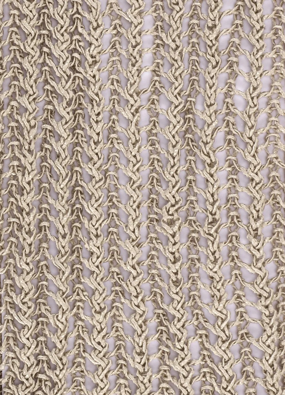 Erstklassiger Pullover mit Ajourmuster in Sandbeige, edlem Glanz und Melange-Effekten allover, rundem Halsausschnitt sowie langen Ärmeln.