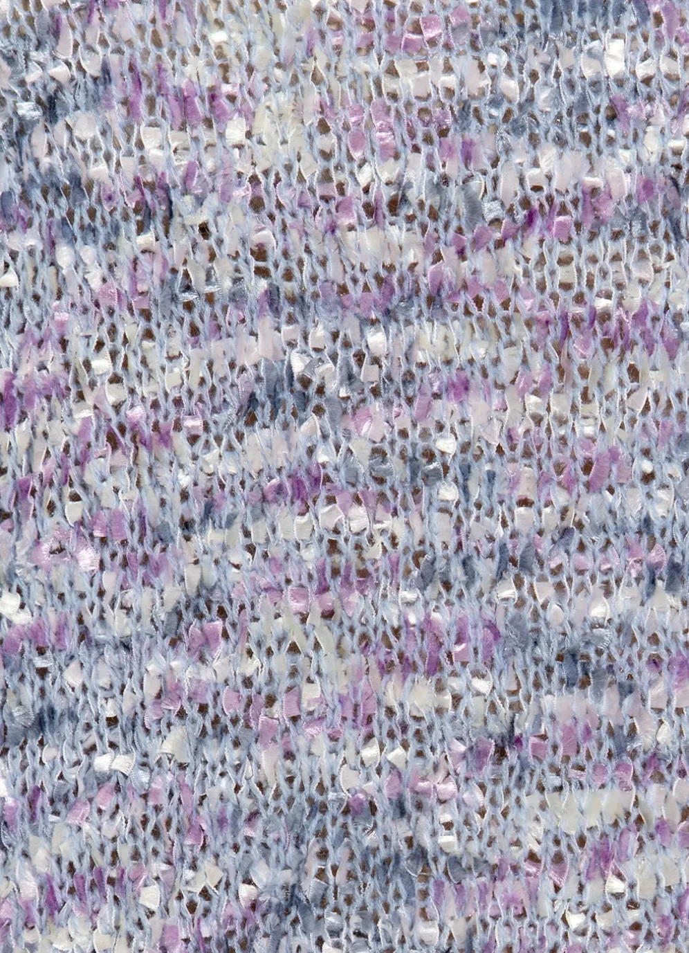 Pullover aus edlem Federgarn in Helljeans-Flieder-Ecru und in Größe 38.
