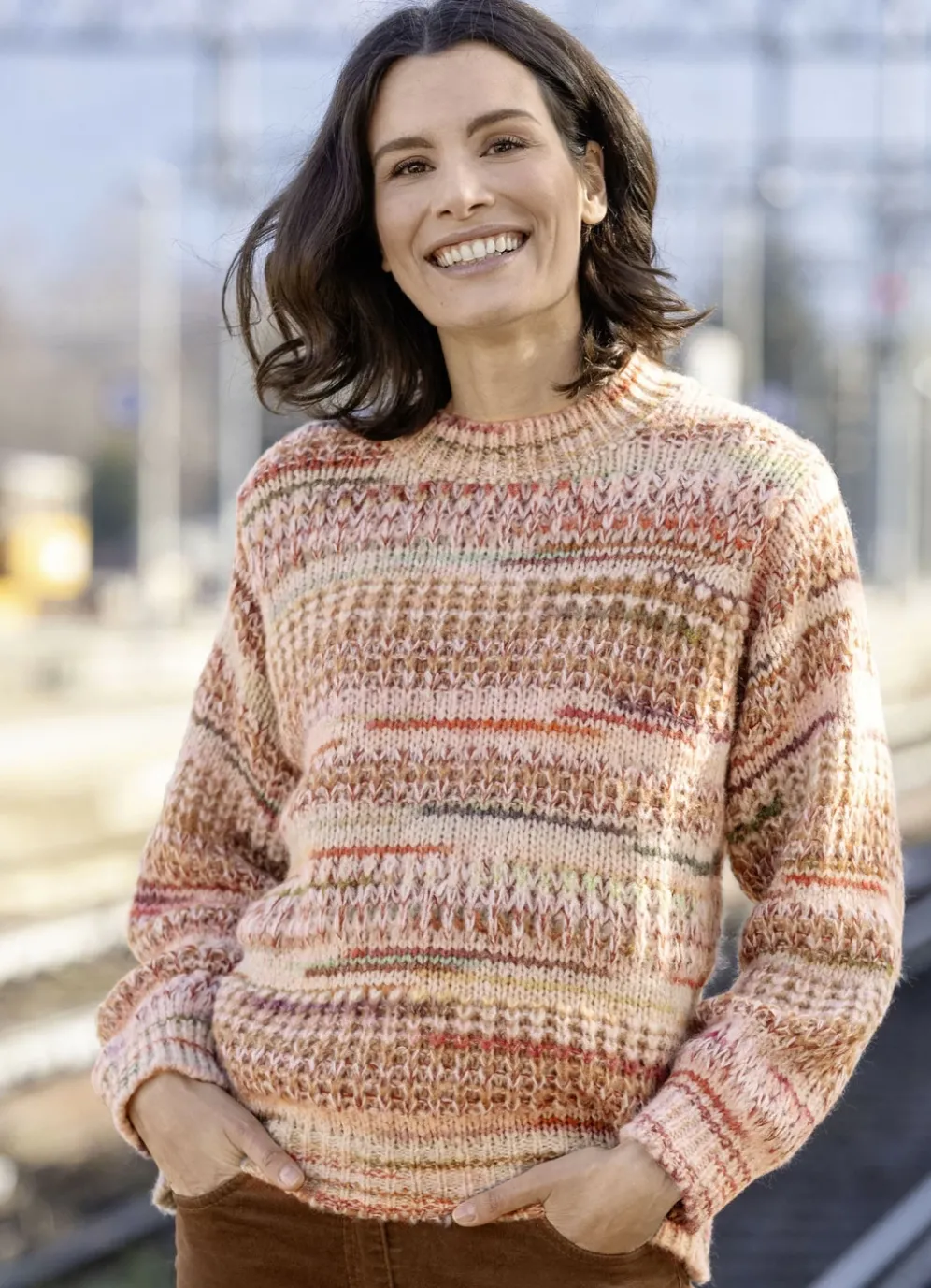 Pullover in Grobstrick in Größe L(44/46) und in Creme-Multicolor.