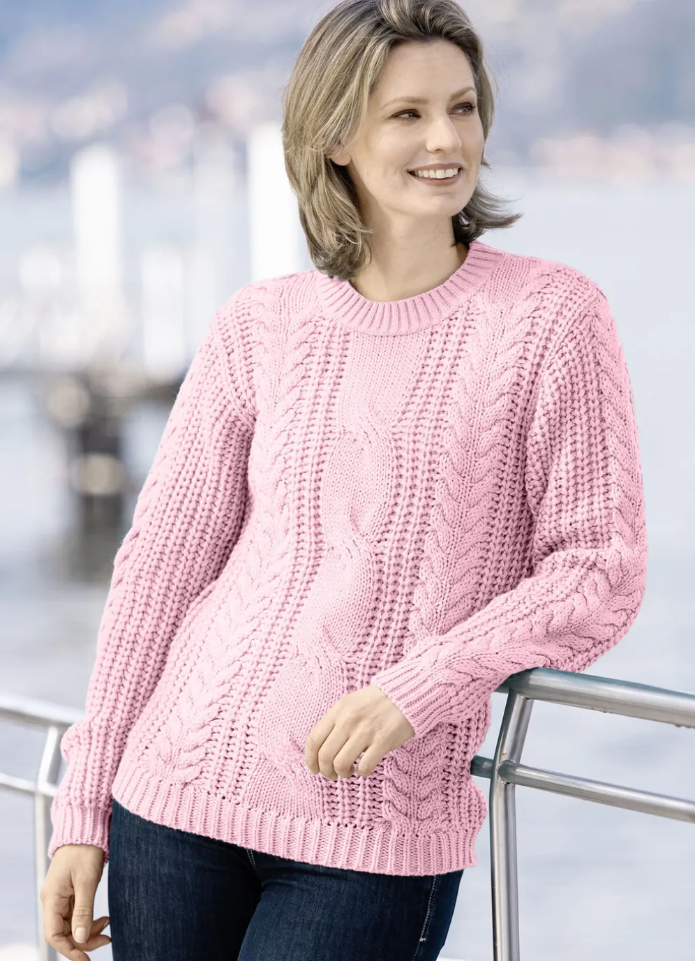 Pullover mit Zopf- und Flechtmuster