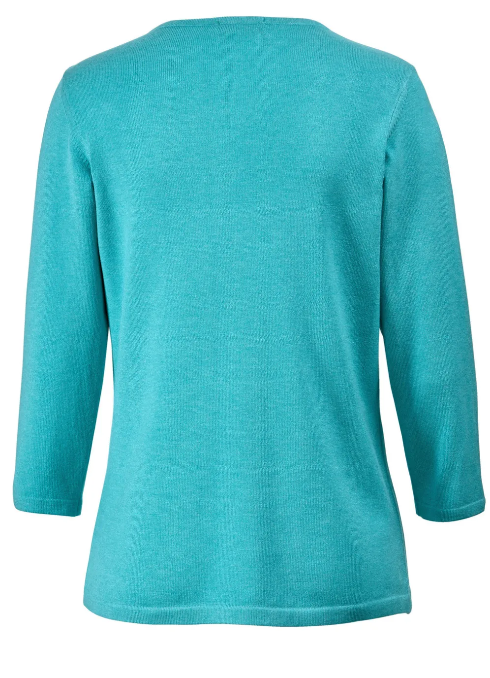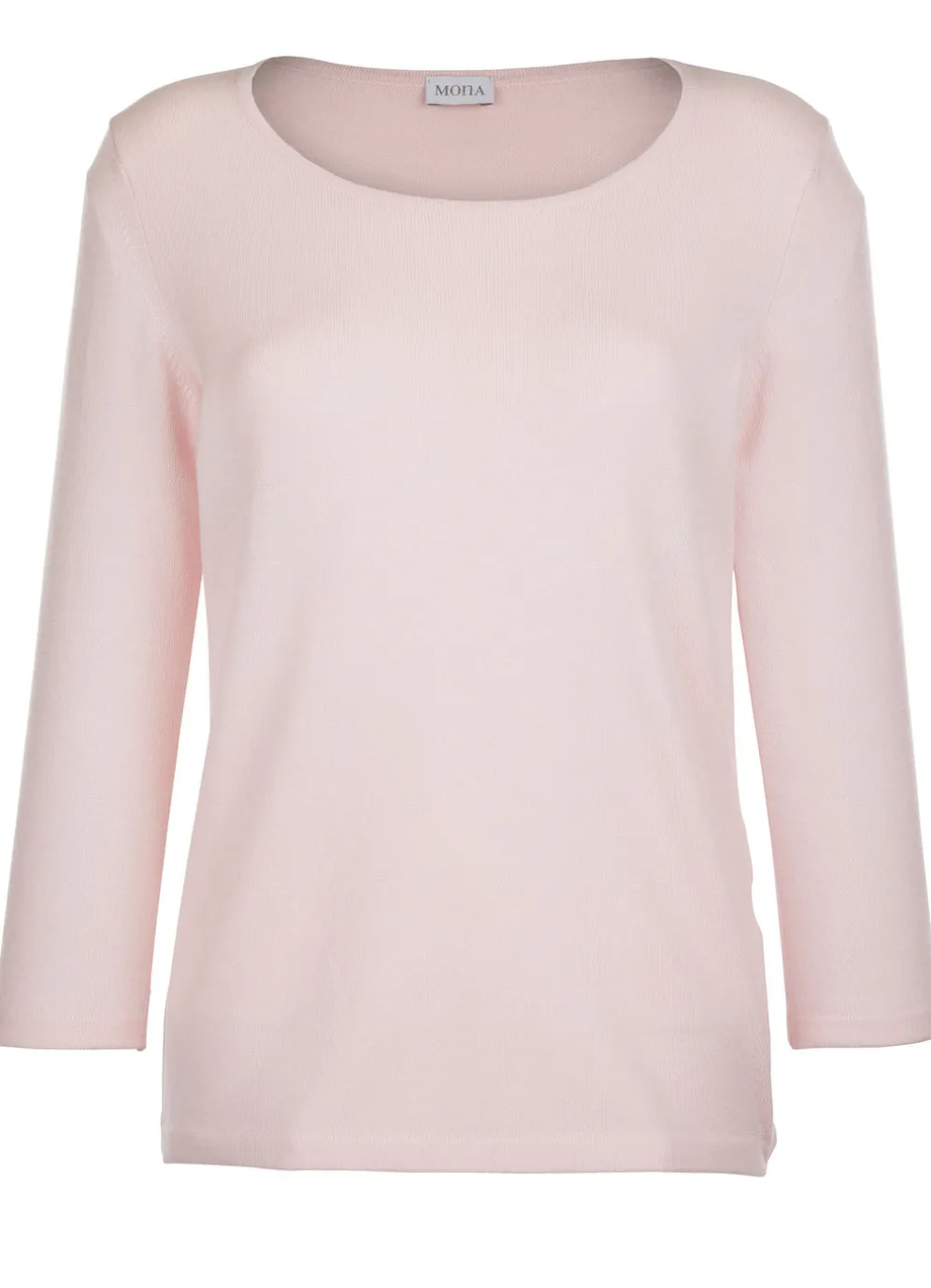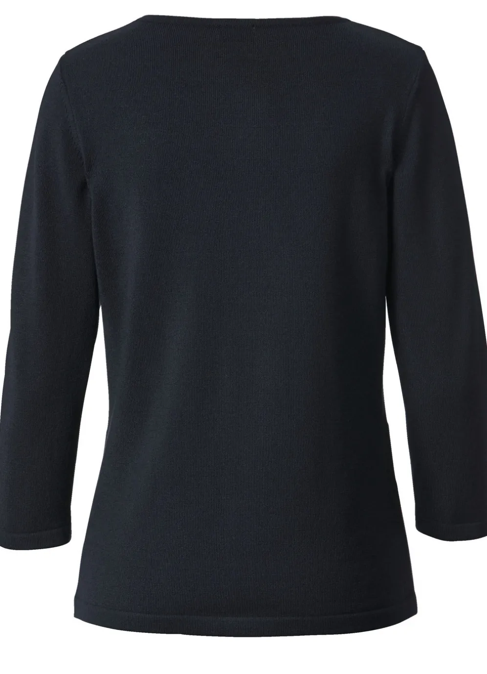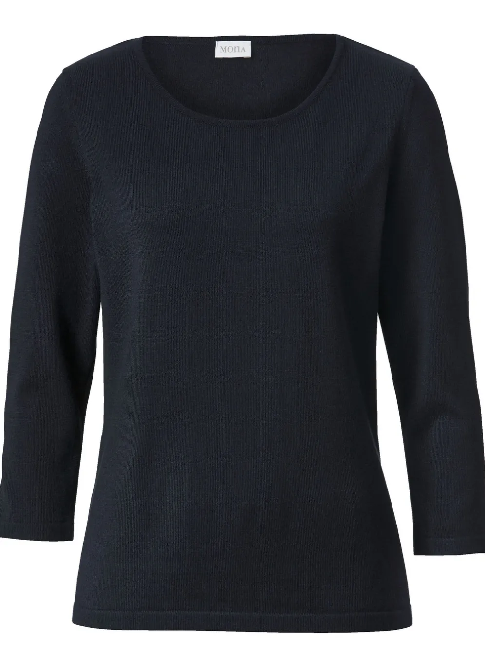 Pullover: Rundhals, 3/4-lange Ärmel, leicht tailliert, weich fließend.
