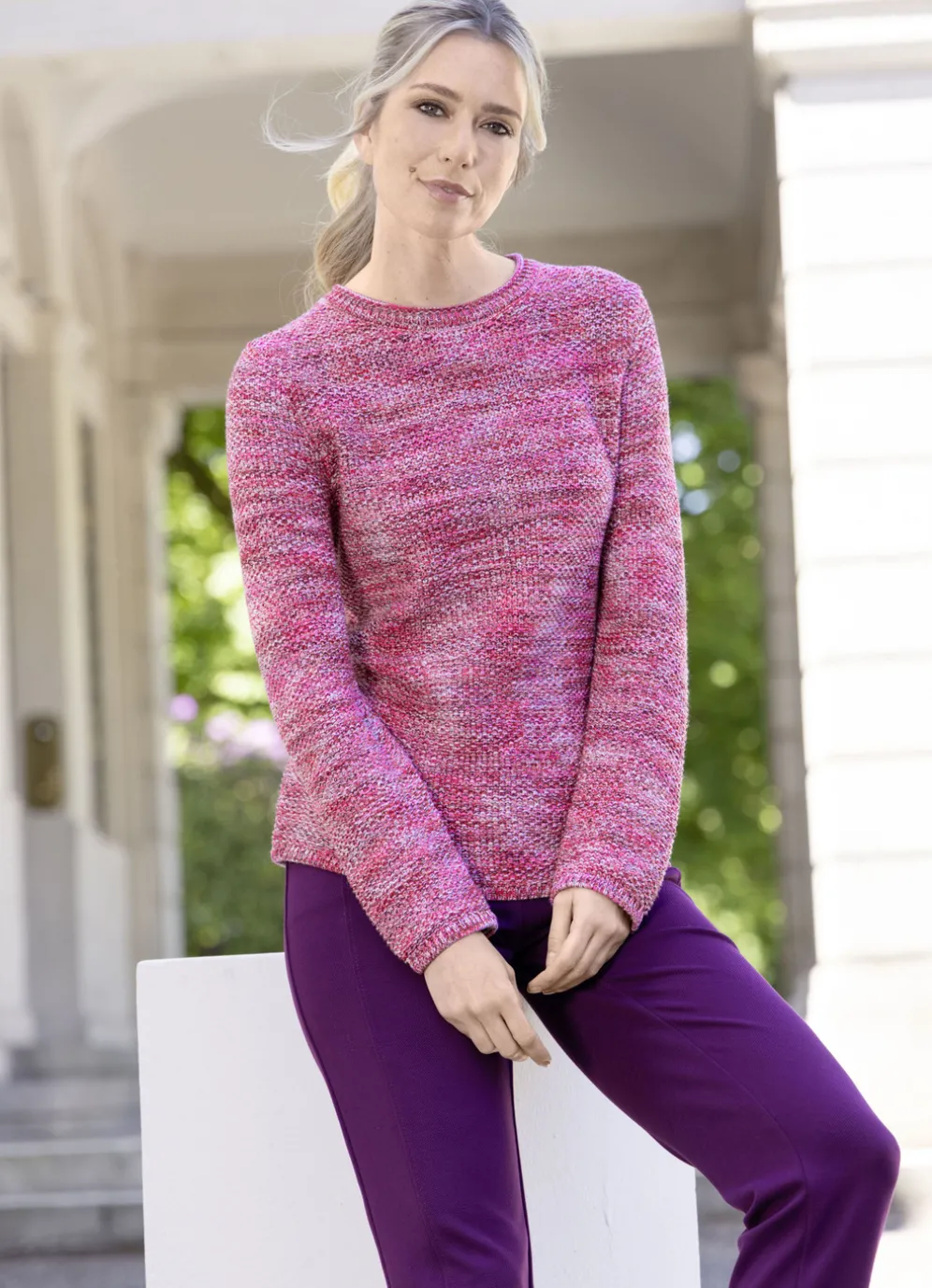 Pullover mit Reiskornstruktur in Pink-Multicolor und in Größe 40.