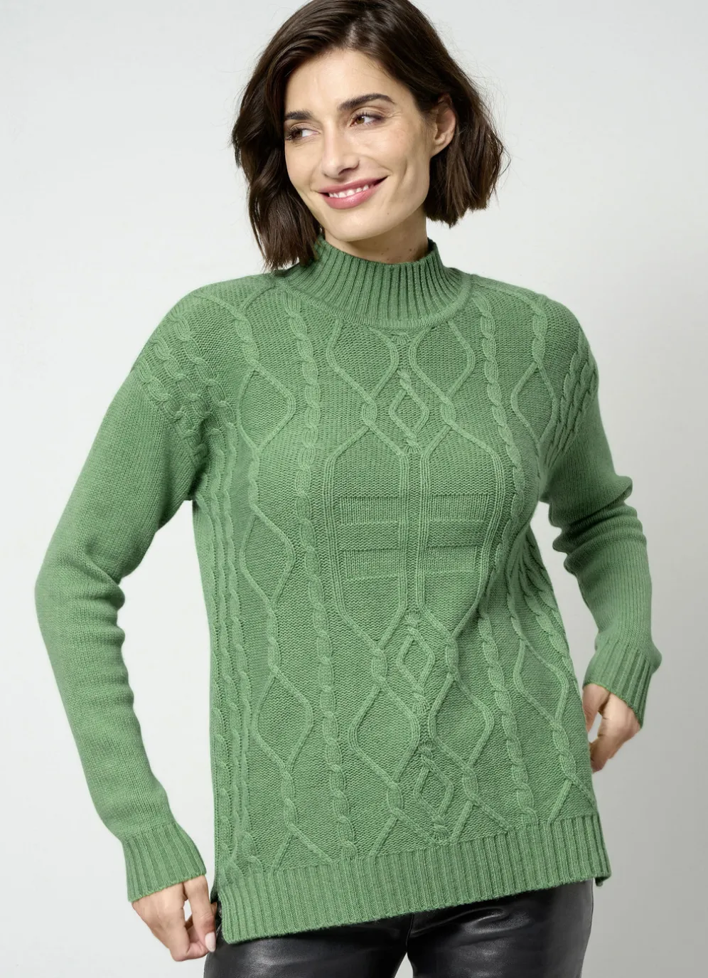 Pullover mit Schurwolle und Kaschmir in Grün und in Größe 52.