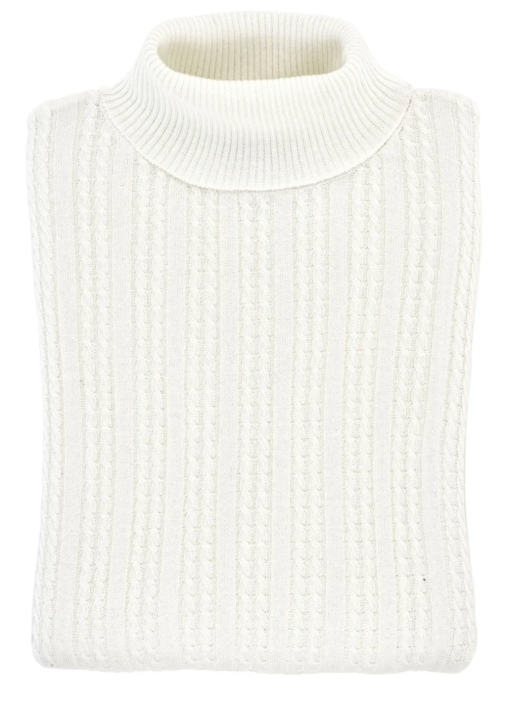Ein unverzichtbares Basic ist dieser Pullover mit Rollkragen, Zopf- und Streifenstruktur allover, langen Ärmeln sowie gerippten Abschlüssen.