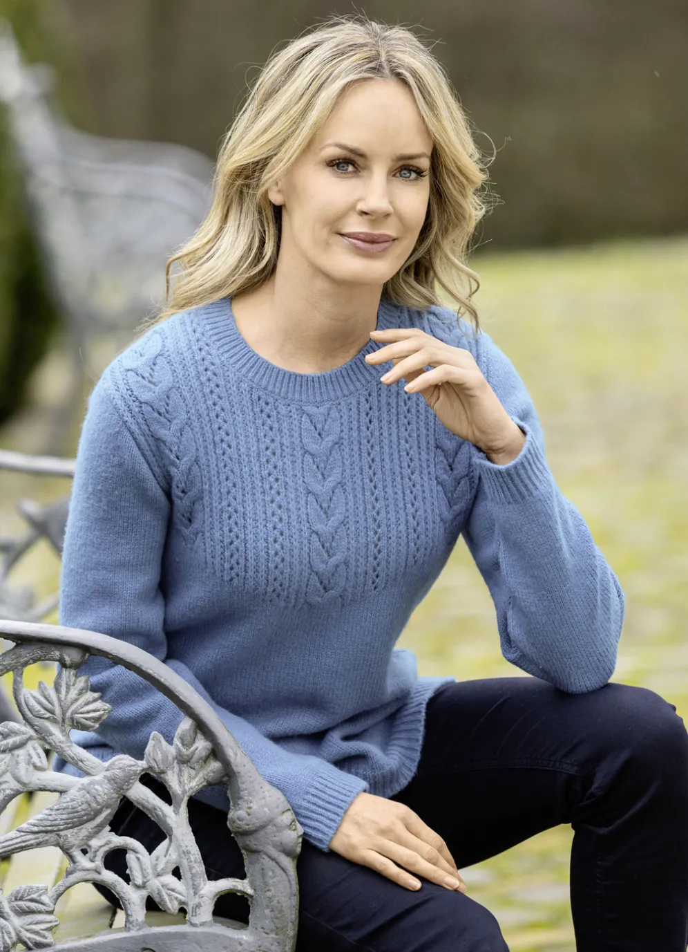 Pullover mit Strukturmix in Bleu und in Größe 40.