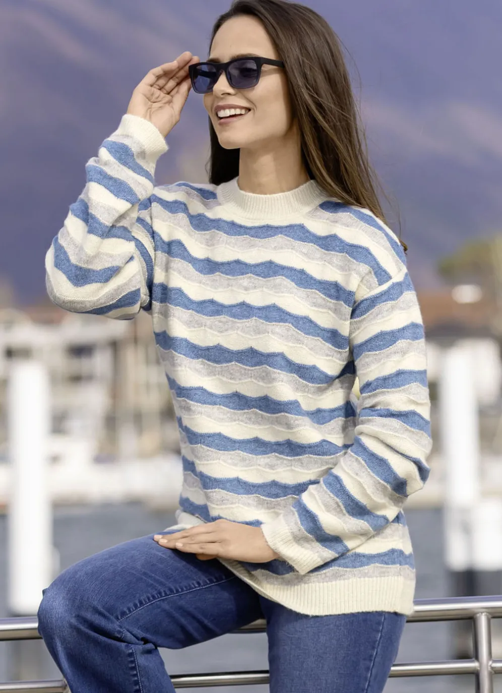 Pullover mit Wellenmuster in Größe S(36/38) und in Ecru-Bleu-Hellgrau.
