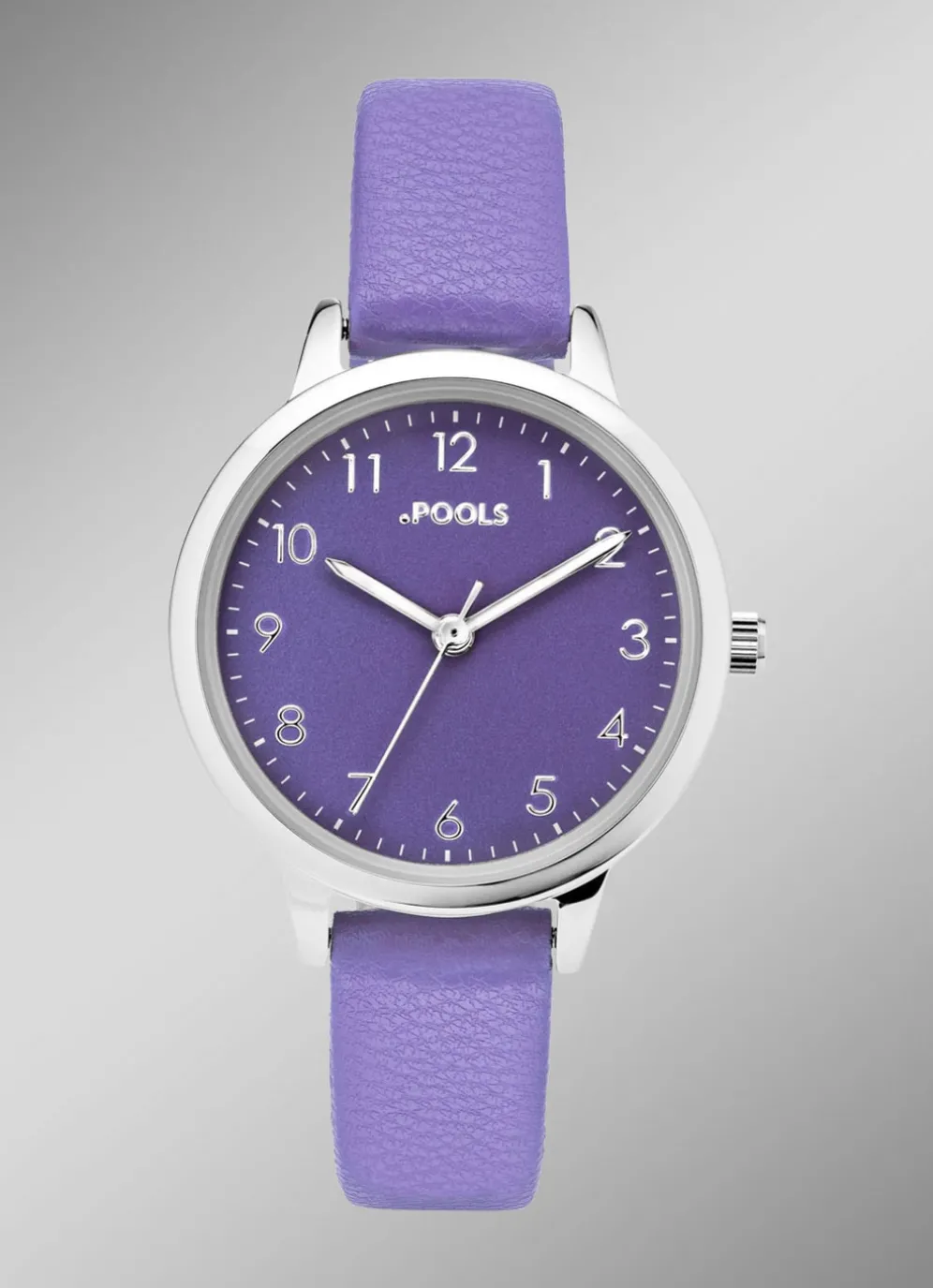 Diese schicke Damenuhr ist das perfekte Accessoire für jeden Anlass. Mit ihrem robusten silberfarbenen Metallgehäuse und dem eleganten lilafarbenen Kunstlederband mit Dornschliesse ist sie sowohl langlebig als auch stilvoll. Das Minerlaglas schützt das farblich abgestimmte Zifferblatt vor Kratzern und Beschädigungen. Die Anzeige von Stunde, Minute und Sekunde sorgt dafür, dass Sie immer pünktlich sind. Mit einem Durchmesser von 30 mm ist sie die perfekte Größe für jedes Handgelenk. Die Uhr ist spritzwassergeschützt und somit bestens geeignet für den täglichen Gebrauch.