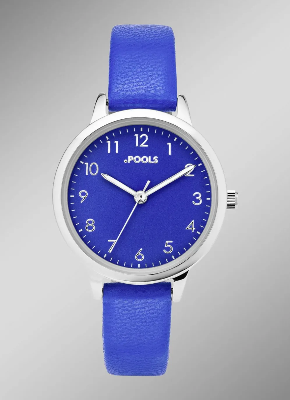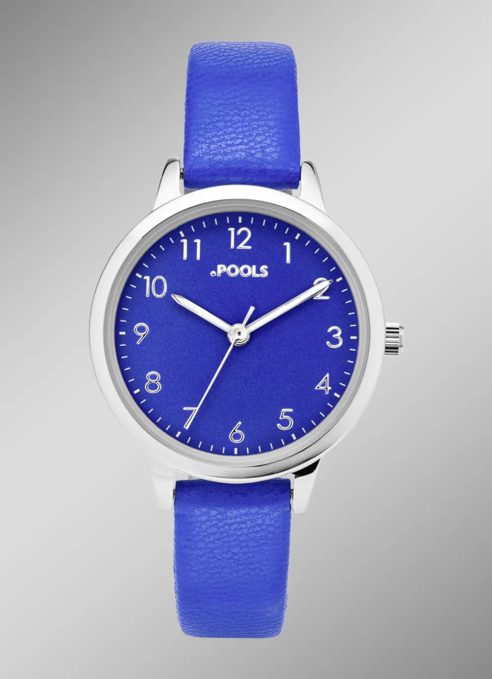 Unsere neue Damenuhr ist das perfekte Accessoire für jeden Anlass. Mit ihrem robusten silberfarbenen Metallgehäuse und dem eleganten royalblauen Kunstlederband mit Dornschliesse ist sie sowohl langlebig als auch stilvoll. Das Minerlaglas schützt das farblich abgestimmte Zifferblatt vor Kratzern und Beschädigungen. Die Anzeige von Stunde, Minute und Sekunde sorgt dafür, dass Sie immer pünktlich sind.
