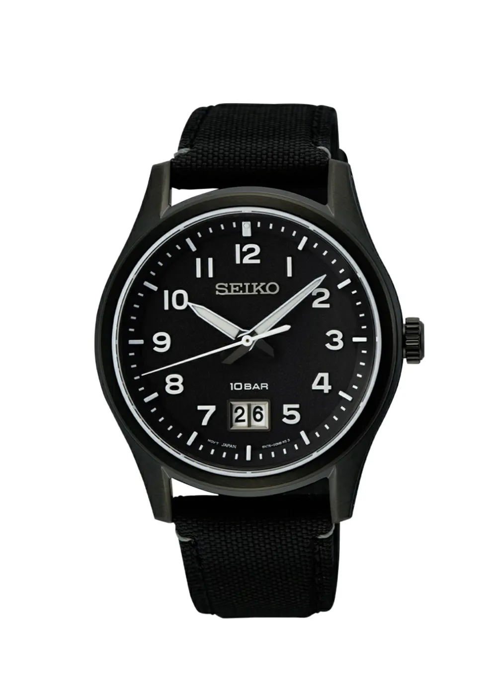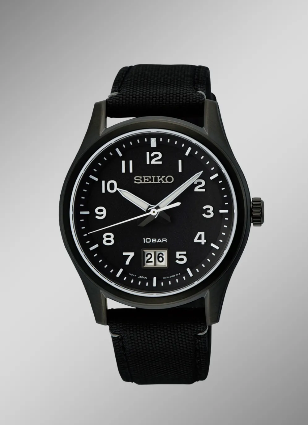 Die Seiko Herrenuhr ist mehr als nur eine Uhr. Sie ist ein Ausdruck von Stil, Qualität und Präzision. Diese Uhr verfügt über ein elegantes Edelstahlgehäuse mit Titankarbitauflage und einfarblich abgestimmtes Nylonband mit Dornschliesse, das perfekt zu jedem Outfit passt. Das Saphirglas schützt das Zifferblatt vor Kratzern und bietet eine klare Sicht auf die Zeit. Die LumiBrite-Zeiger und -Indizes leuchten im Dunkeln, damit du immer die Zeit im Blick hast. Die Uhr ist mit einem Quarzwerk ausgestattet, das eine hohe Genauigkeit und Zuverlässigkeit garantiert. Die Uhr ist außerdem bis zu 10 bar wasserdicht, sodass du sie auch beim Schwimmen oder Duschen tragen kannst. Das Highlight dieser Uhr ist das Großdatum, das dir das Datum in einem großen Fenster anzeigt. Die Uhr hat einen Durchmesser von 39 mm, was sie ideal für jeden Handgelenkumfang macht. Die Seiko Herrenuhr ist die perfekte Wahl für Männer, die Wert auf Eleganz, Funktionalität und Langlebigkeit legen. Bestelle sie jetzt und überzeuge dich selbst von der Qualität dieser Uhr.