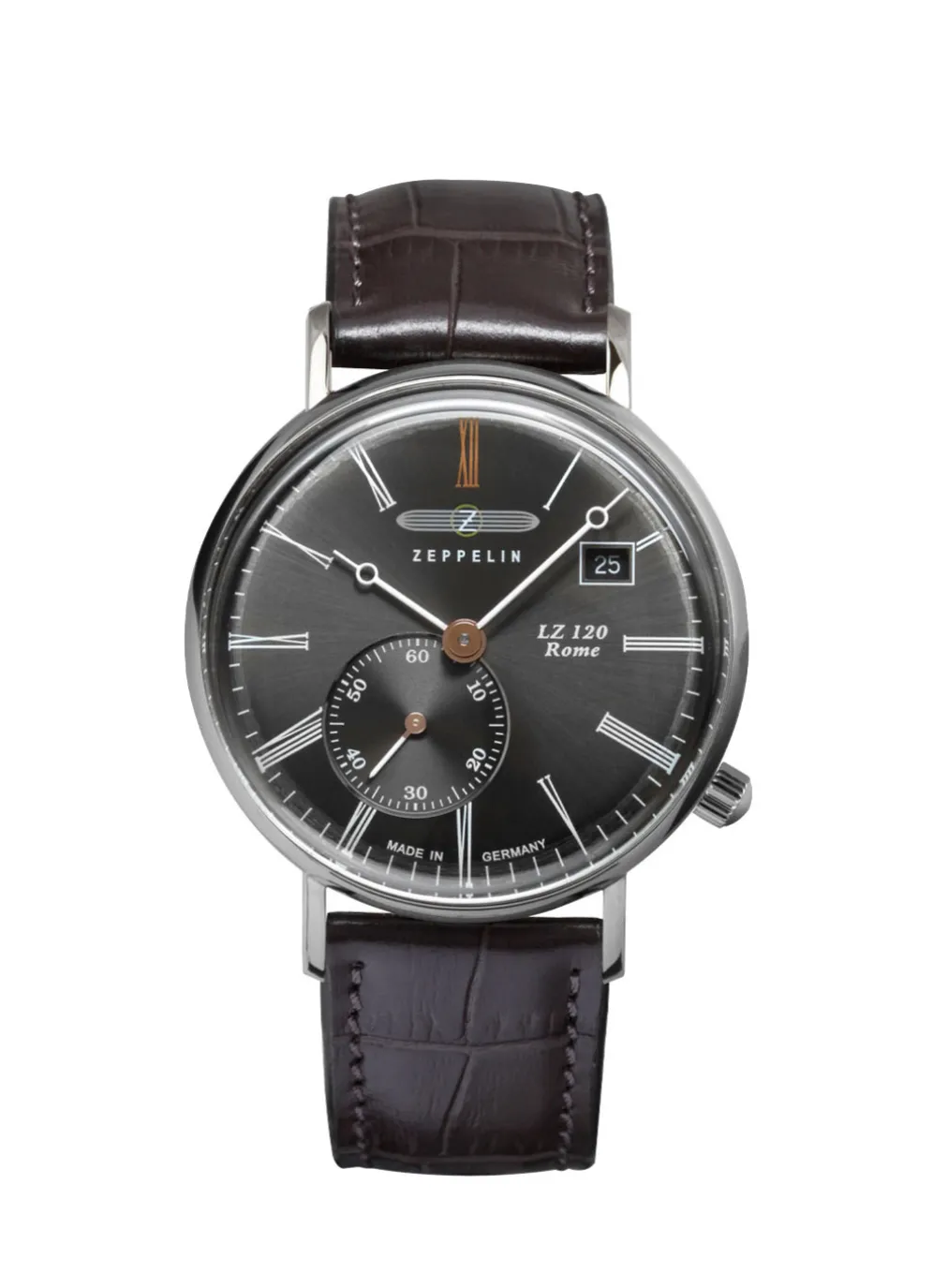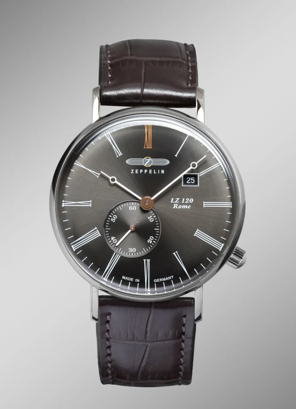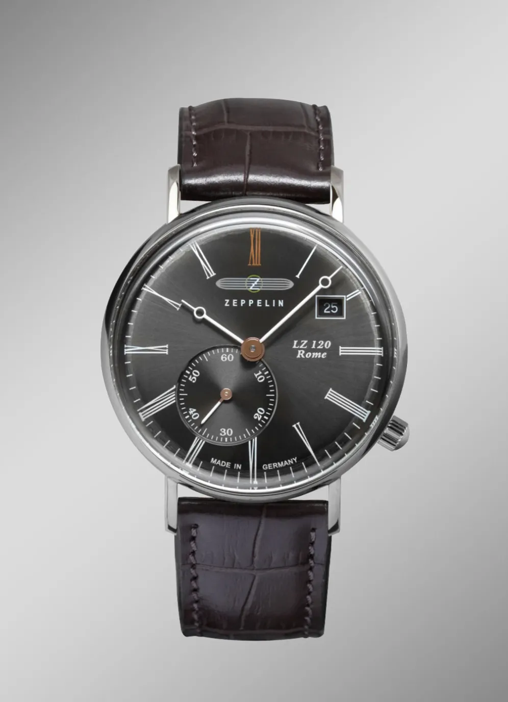 „La bellezza sta negli occhi di chi guarda“ bedeutet so viel wie “Die Schönheit liegt im Auge des Betrachters” und dürfte in Falle der Zeppelin Rome keine Wünsche offen lassen. Das Schweizer Ronda Uhrwerk mit dezentraler kleiner Sekunde ist in Präzision kaum zu übertreffen. Gemeinsam mit dem feinem Lederarmband aus italienischem Kalbsleder gehen sie eine Synergie ein, die an Eleganz nicht zu übertreffen ist. Che bello! Der Hersteller PointTec aus München mit seiner eigenen Produktionsstätte in Ruhla, Thüringen verfügt mit 30 Jahre Erfahrung über ein hervorragendes Know-how in der Herstellung von Uhren.