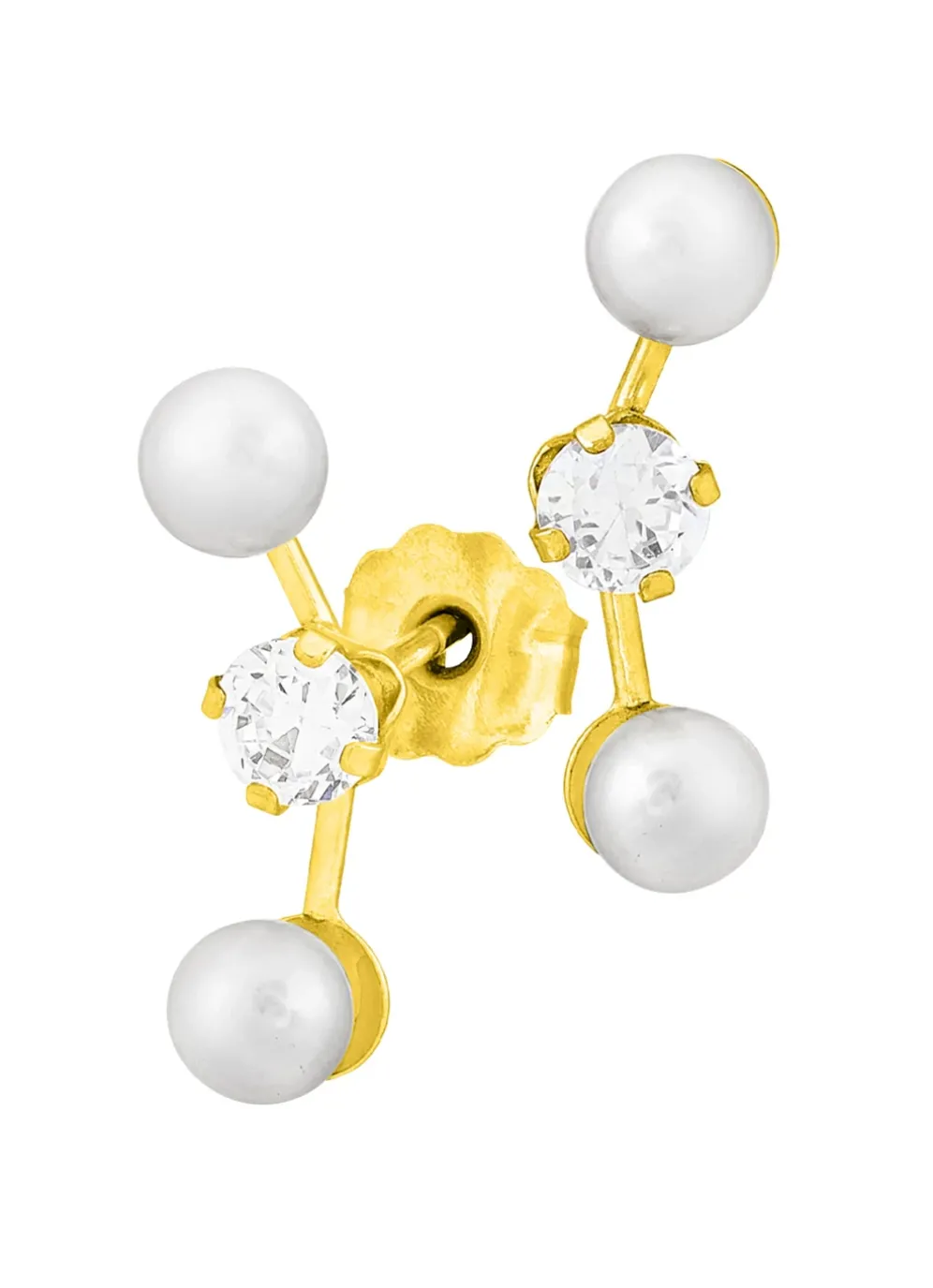 Diese Ohrstecker aus Gold 375/- fein begeistern mit klassischer Eleganz! Die schlichte Form betont die Zeitlosigkeit dieser wunderbaren, 14 mm langen Schmuckstücke, die mit Süßwasser-Zuchtperlen und synthetischen Zirkonia verziert sind.