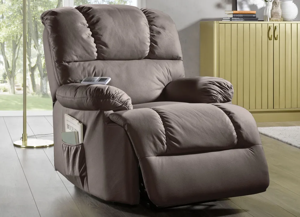Nicht nur für entspannte Fernseh- oder Lesestunden ist dieser gemütliche, weich gepolsterte, bis zur Liegeposition verstellbare Relaxsessel geradezu ideal! Mit komfortabler Kippfunktion (die Rückenlehne verstellt sich gleichzeitig mit der Fußstütze). Auf massivem Grundgestell aus Kiefernholz. Mit komfortabler Polsterung und sehr schönem Bezug (90% Polyester und 10% Baumwolle) gearbeitet. Maximale Belastbarkeit 125 kg.