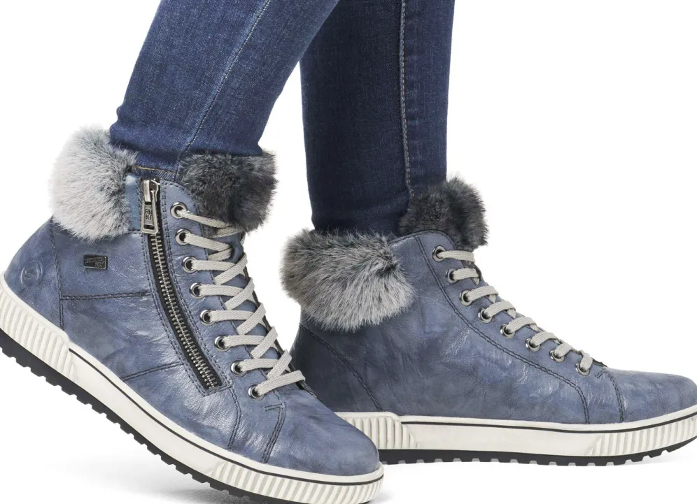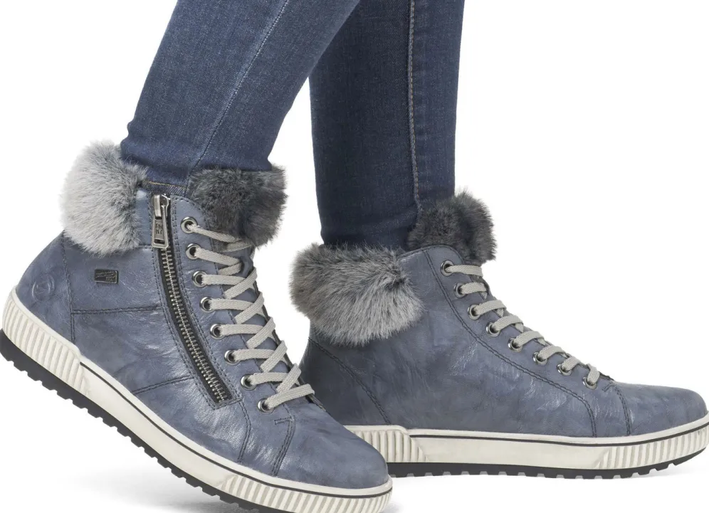 Remonte, gefütterte Damen-Boots, Winterschuhe, Weite G, mit herausnehmbarem Fußbett in Jeans und in Größe 41.