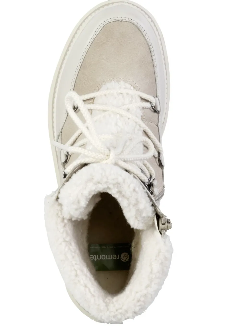 Remonte, gefütterte Damen-Boots, Winterschuhe, Weite G, mit Reißverschluss in Ecru-Beige und in Größe 41.