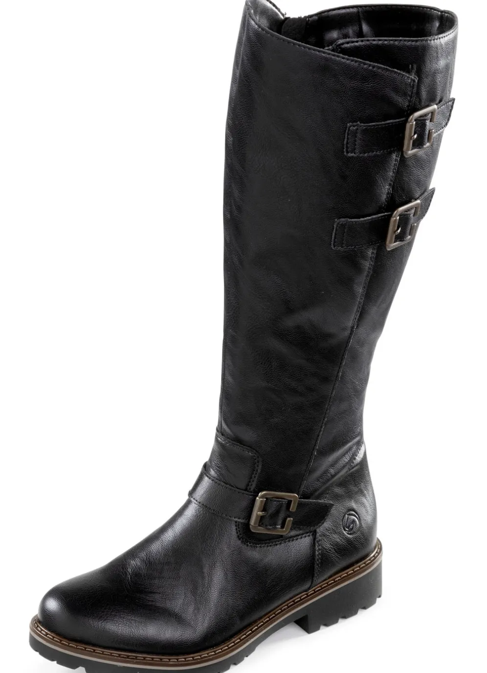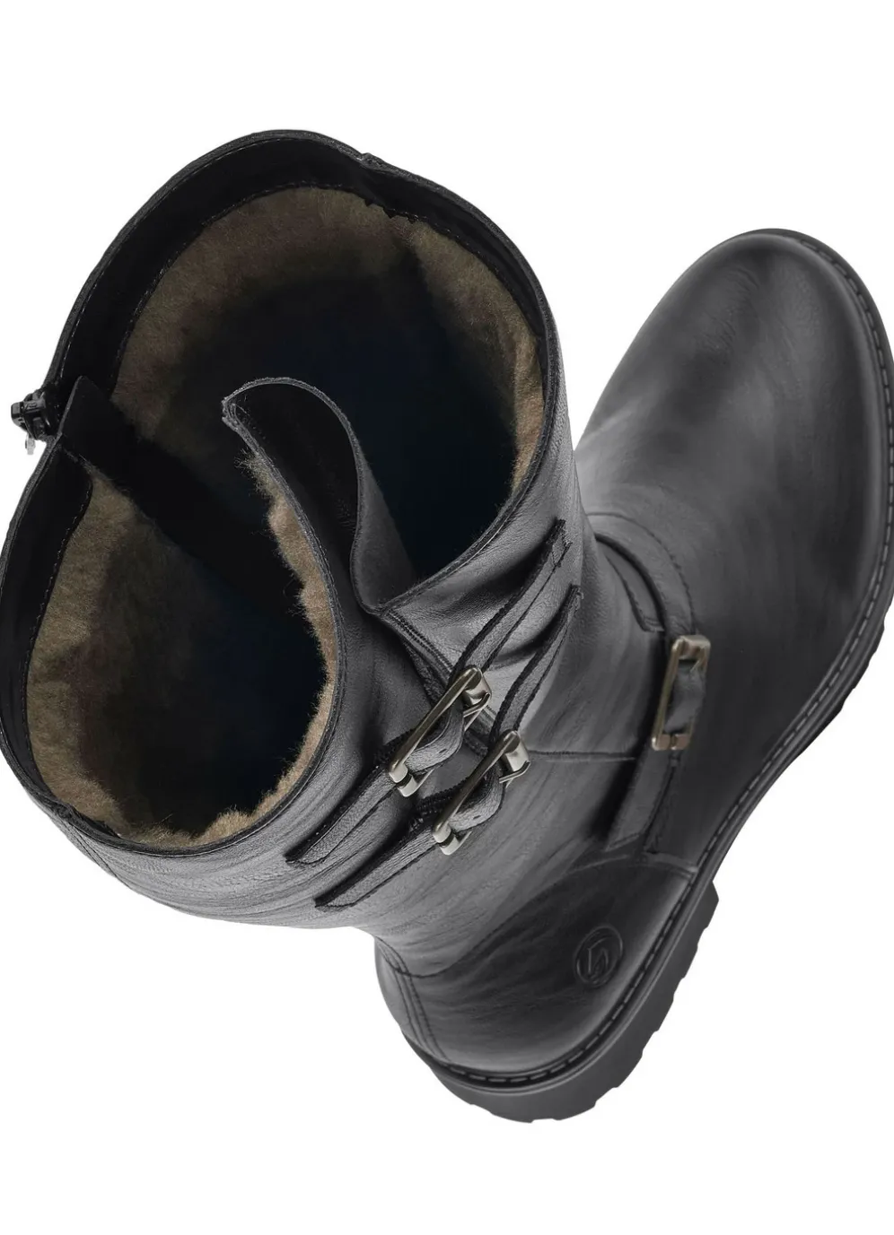 Remonte, gefütterte Damen-Stiefel, Winterschuhe, Weite G, mit Lammfell in Schwarz und in Größe 36.