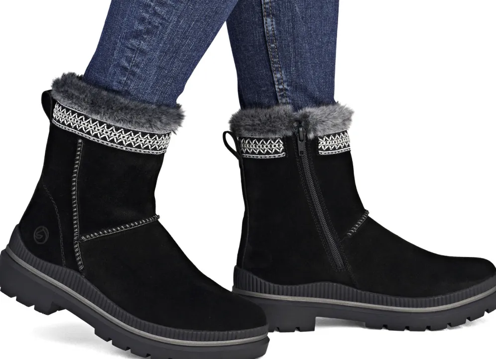 Remonte, gefütterte Damen-Stiefeletten, Winterschuhe, Weite G, mit Lammfell in Schwarz und in Größe 36.