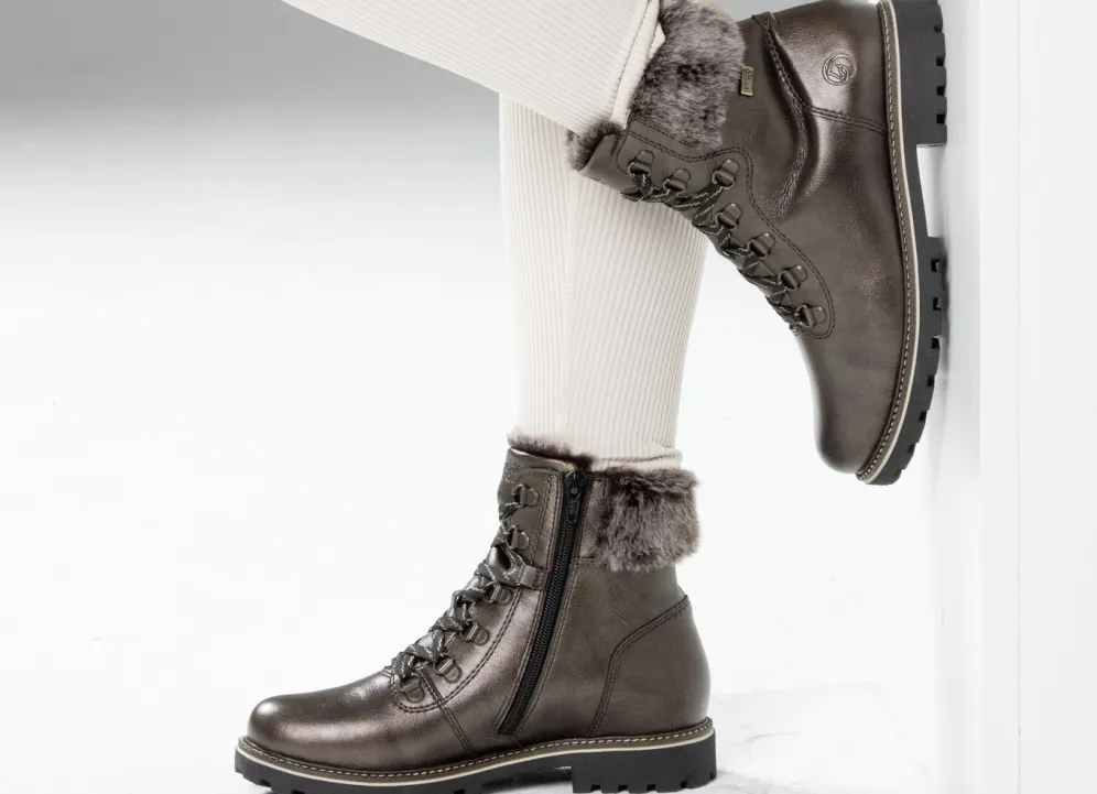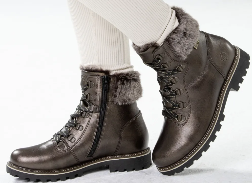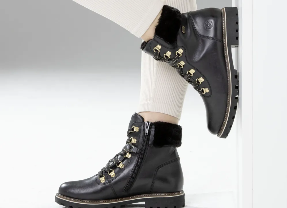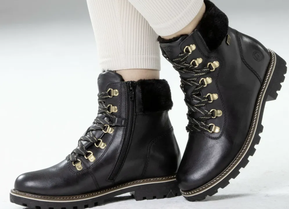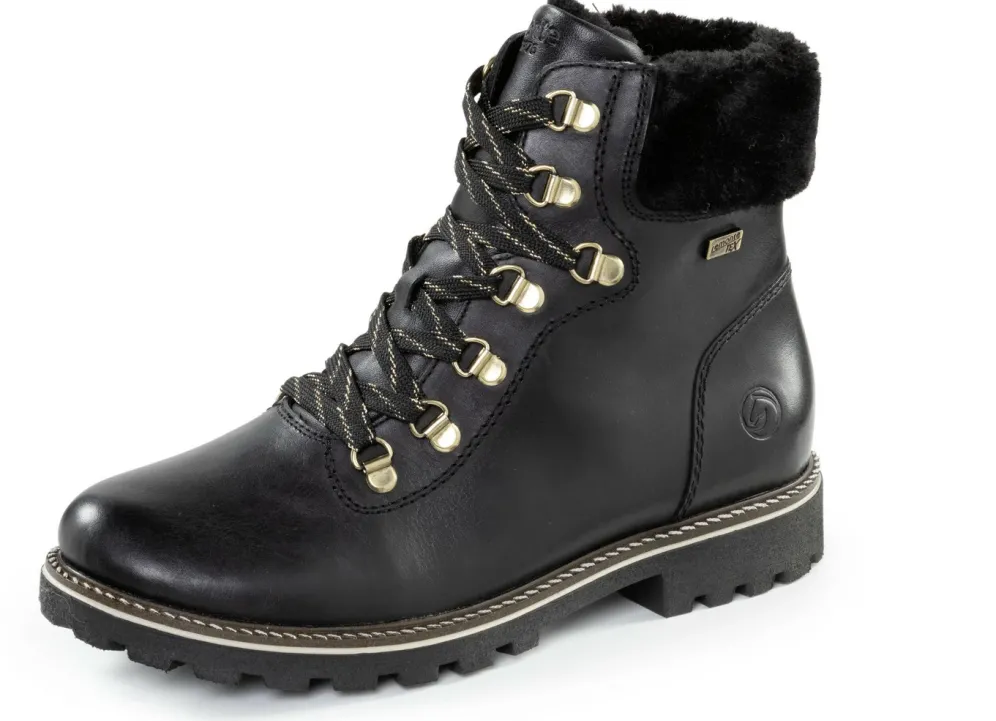 Remonte Schnür-Stiefelette mit Plüschkragen in Schwarz und in Größe 42.