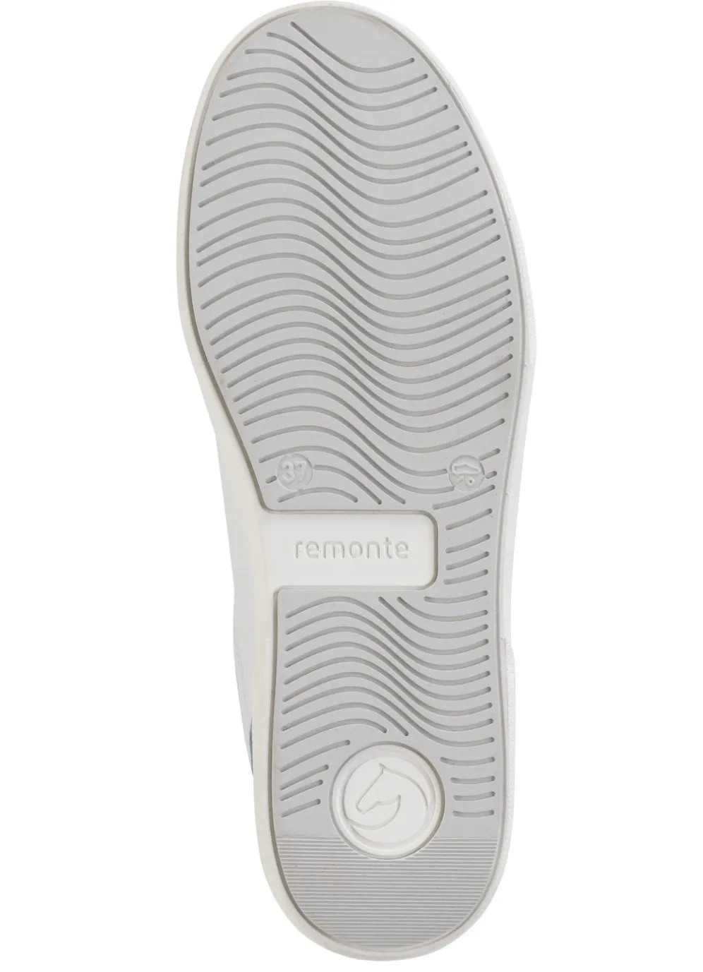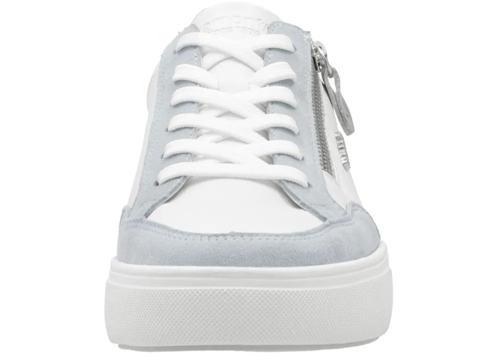 Remonte Sneaker aus Nappa- und Veloursleder mit Metallic-Besatz in Blau-Weiss-Silber und in Größe 39.