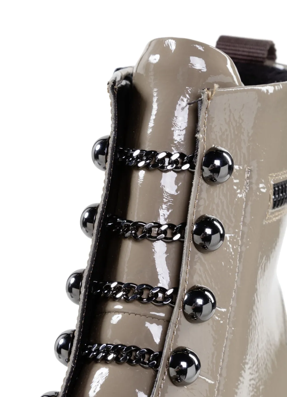 Remonte Stiefelette mit trendigen Zierketten in Schnür-Optik in Taupe und in Größe 36.
