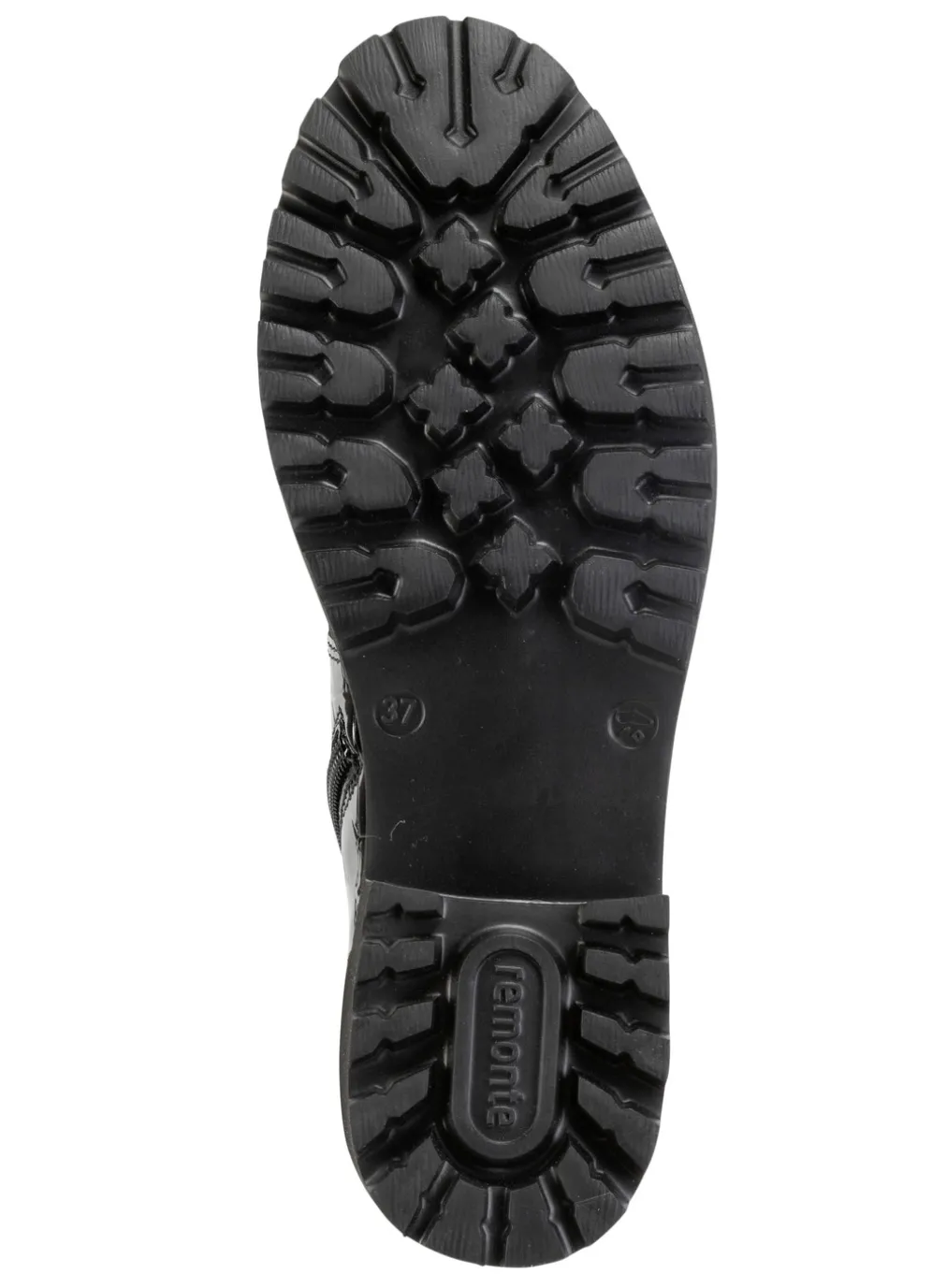 Remonte, stylische Damen-Stiefeletten, Winterschuhe, Weite G, mit herausnehmbarem Fußbett in Schwarz-Gold und in Größe 36.