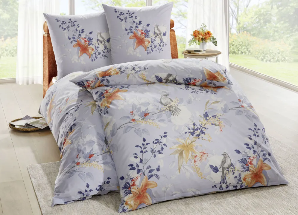 Freuen Sie sich auf den blumigen Zauber dieser beidseitig bedruckten Bettwäsche-Garnitur von Dobnig, die mit den Vögeln eine wahre Augenweide ist. Mit praktischem Reißverschluss. Die Qualität: Renforcé aus 100% Baumwolle. Waschbar bis 60 °C und trocknergeeignet.
