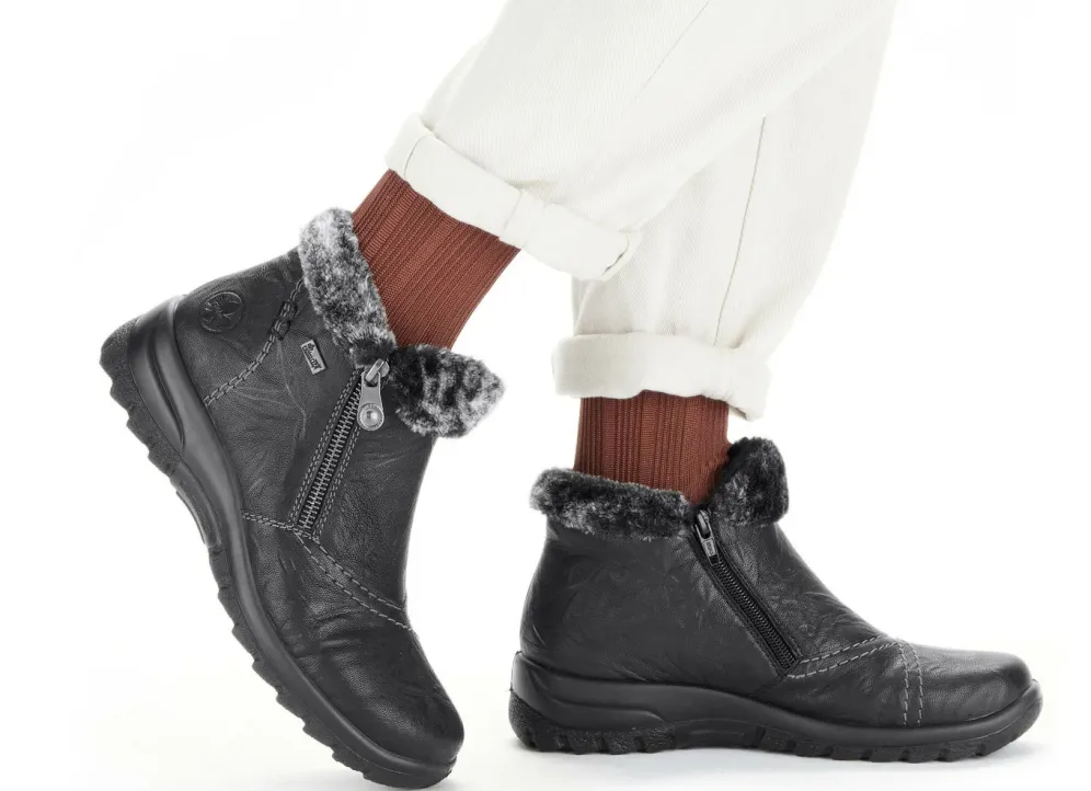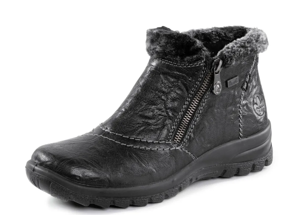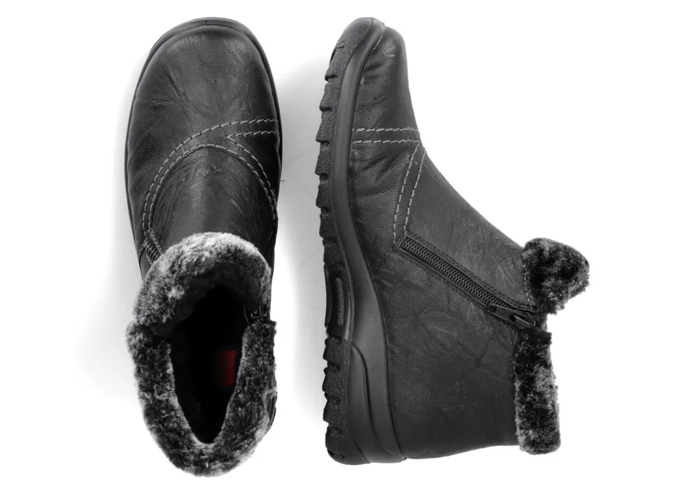 Rieker, gefütterte Damen-Boots, Winterschuhe, mit Reißverschluss in Schwarz und in Größe 41.