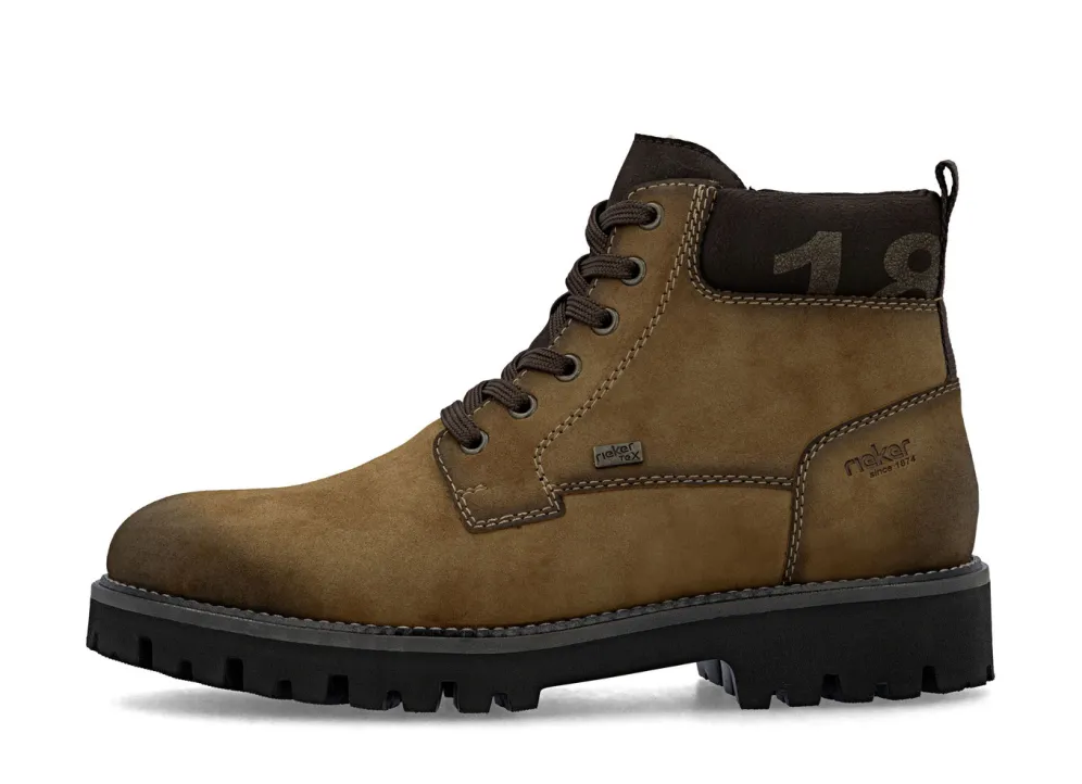 Rieker, gefütterte Herren-Boots, Winterschuhe, Weite H, mit Reißverschluss in Cognac und in Größe 46.