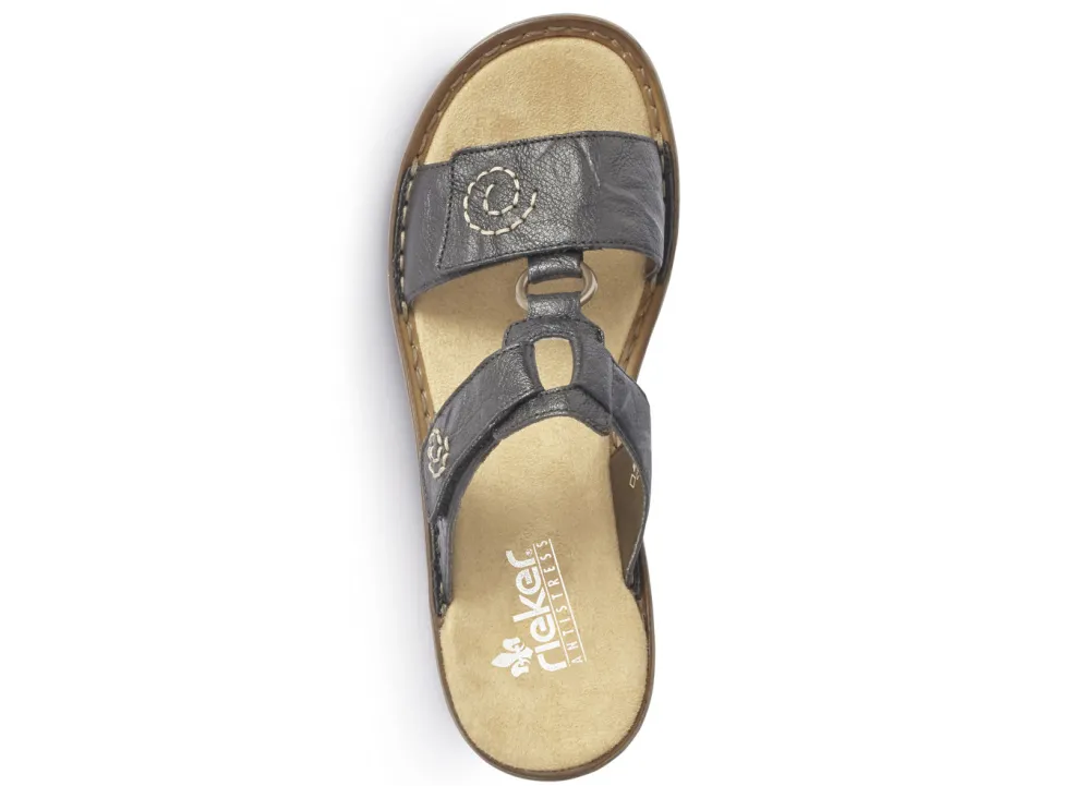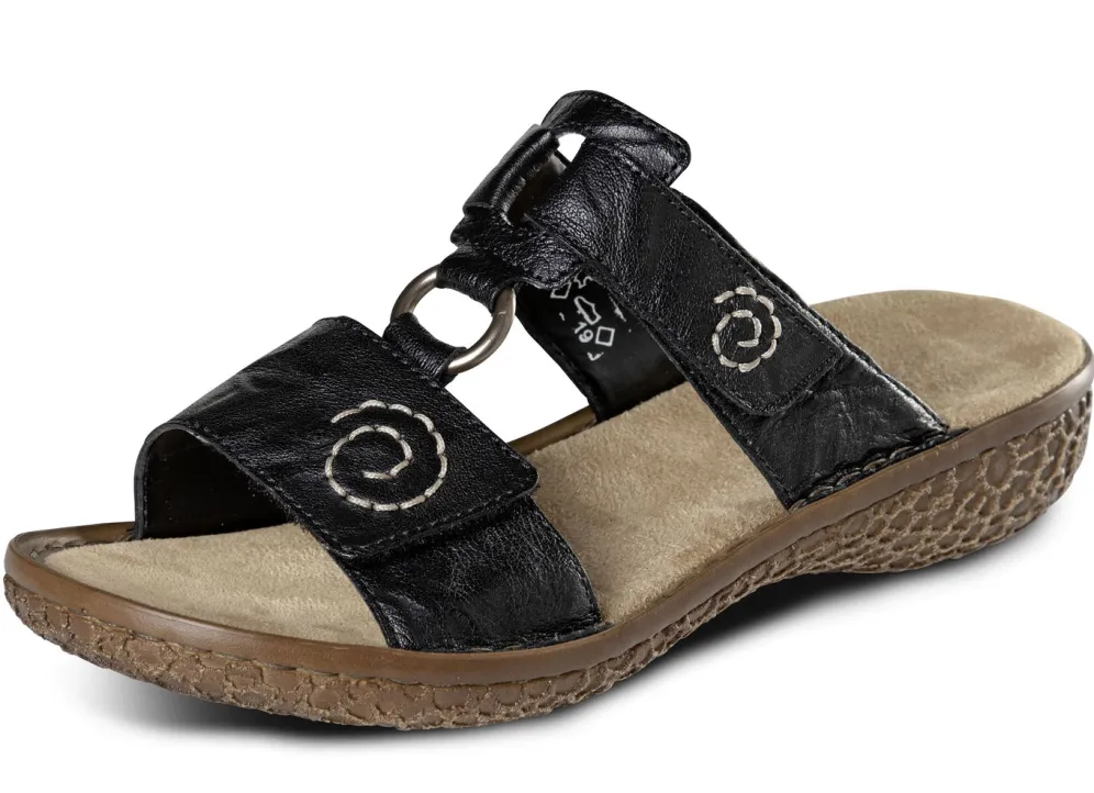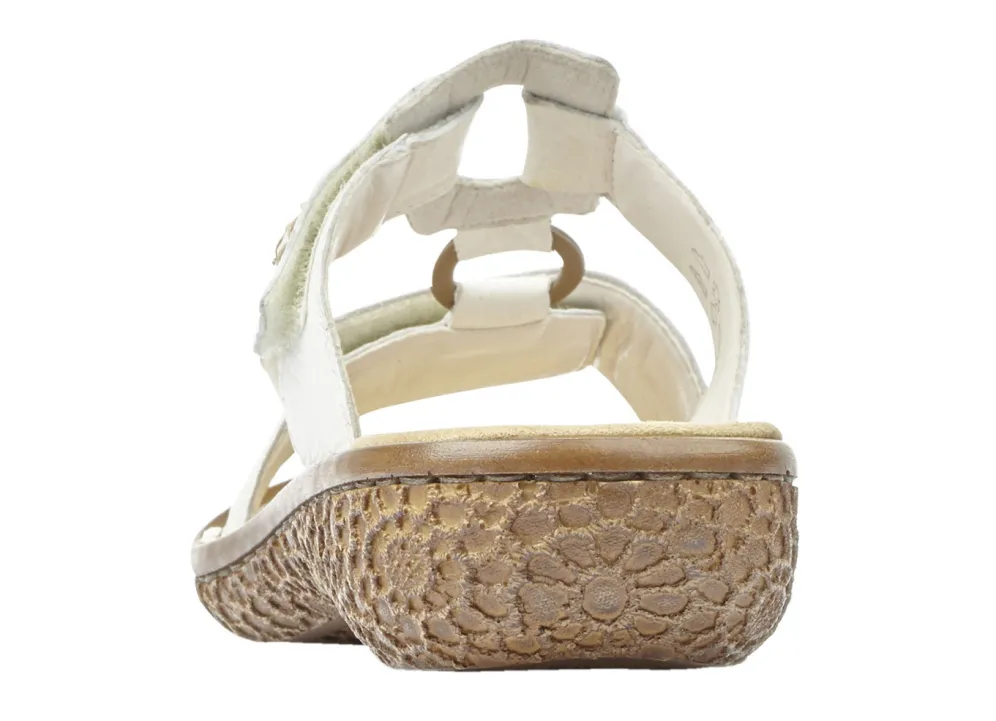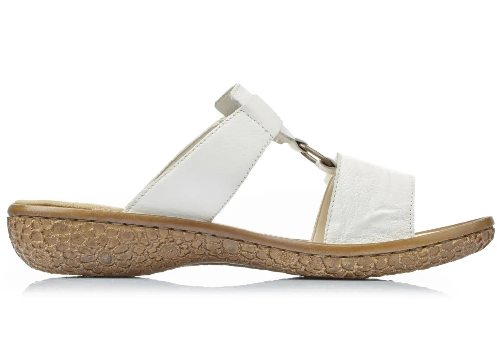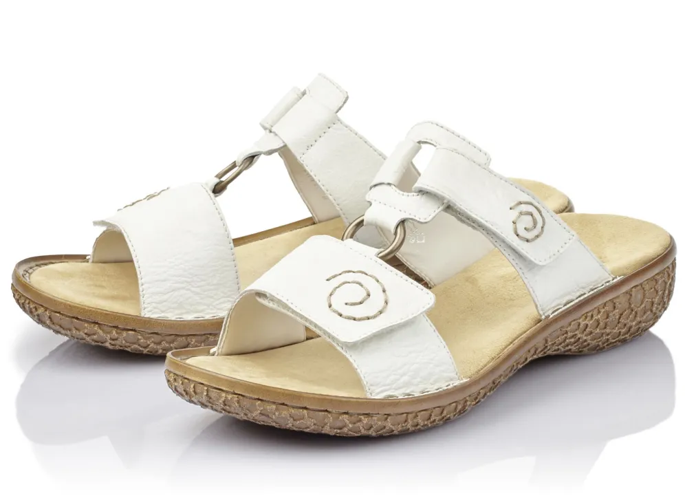 Rieker, modische Damen-Pantoletten, Weite H, mit Klettverschluss in Weiss und in Größe 42.