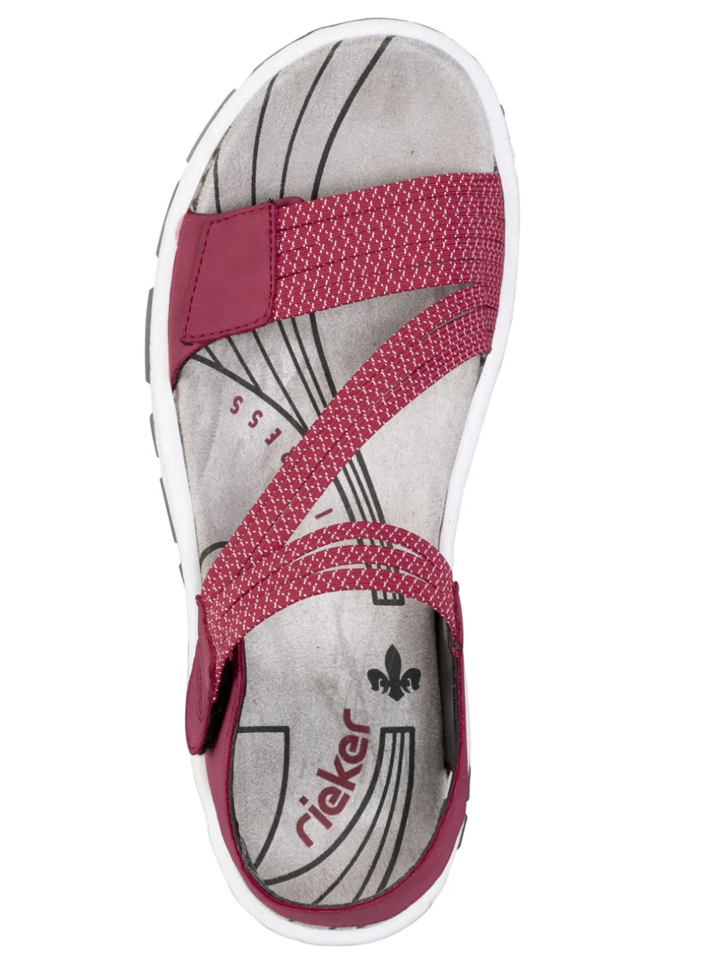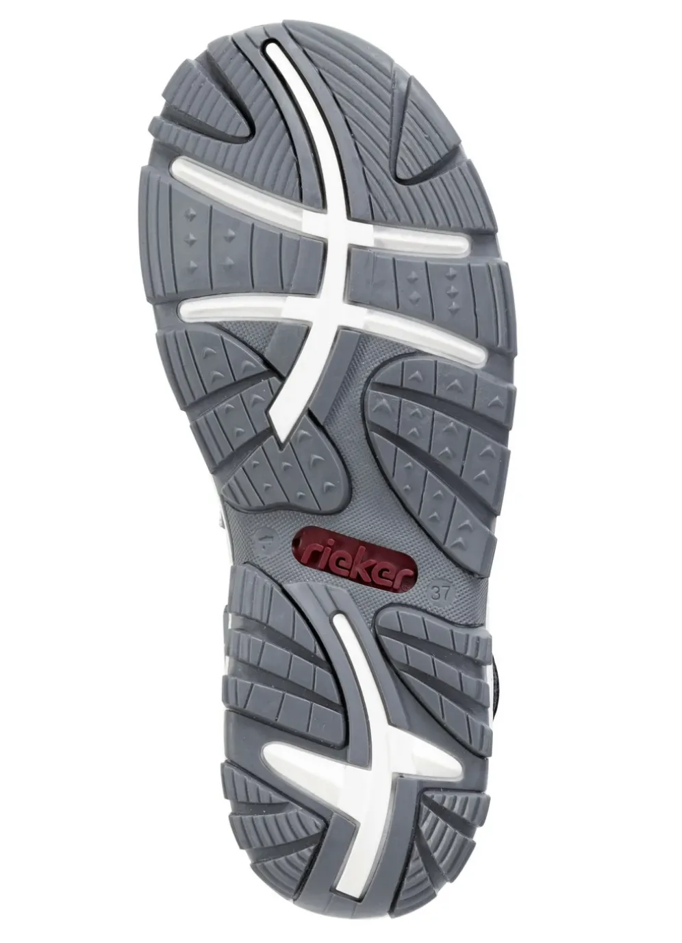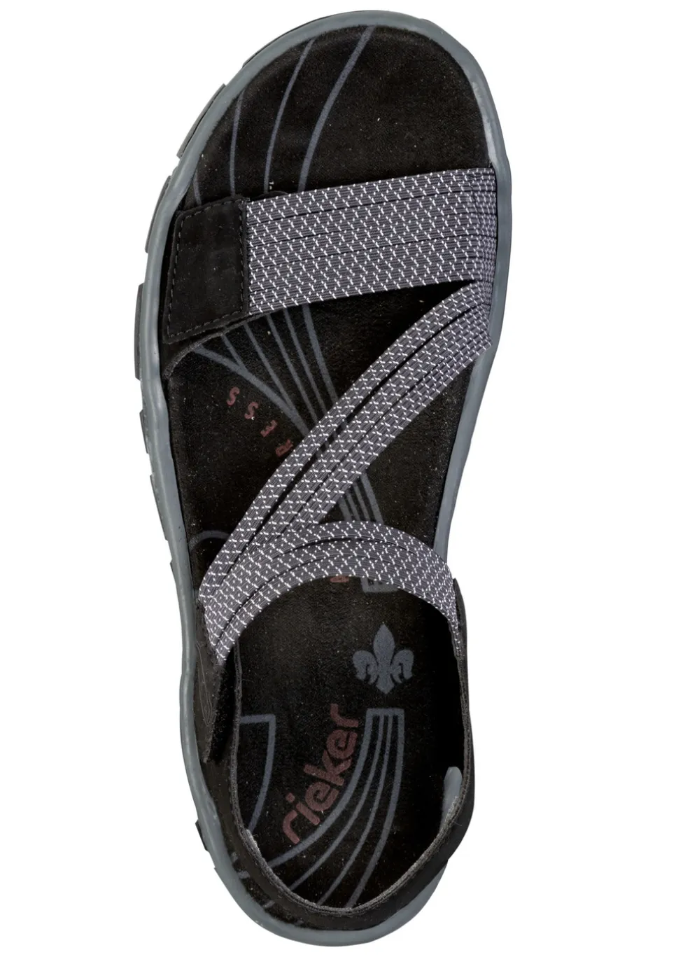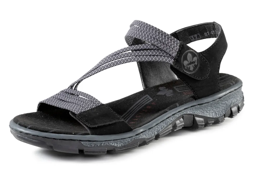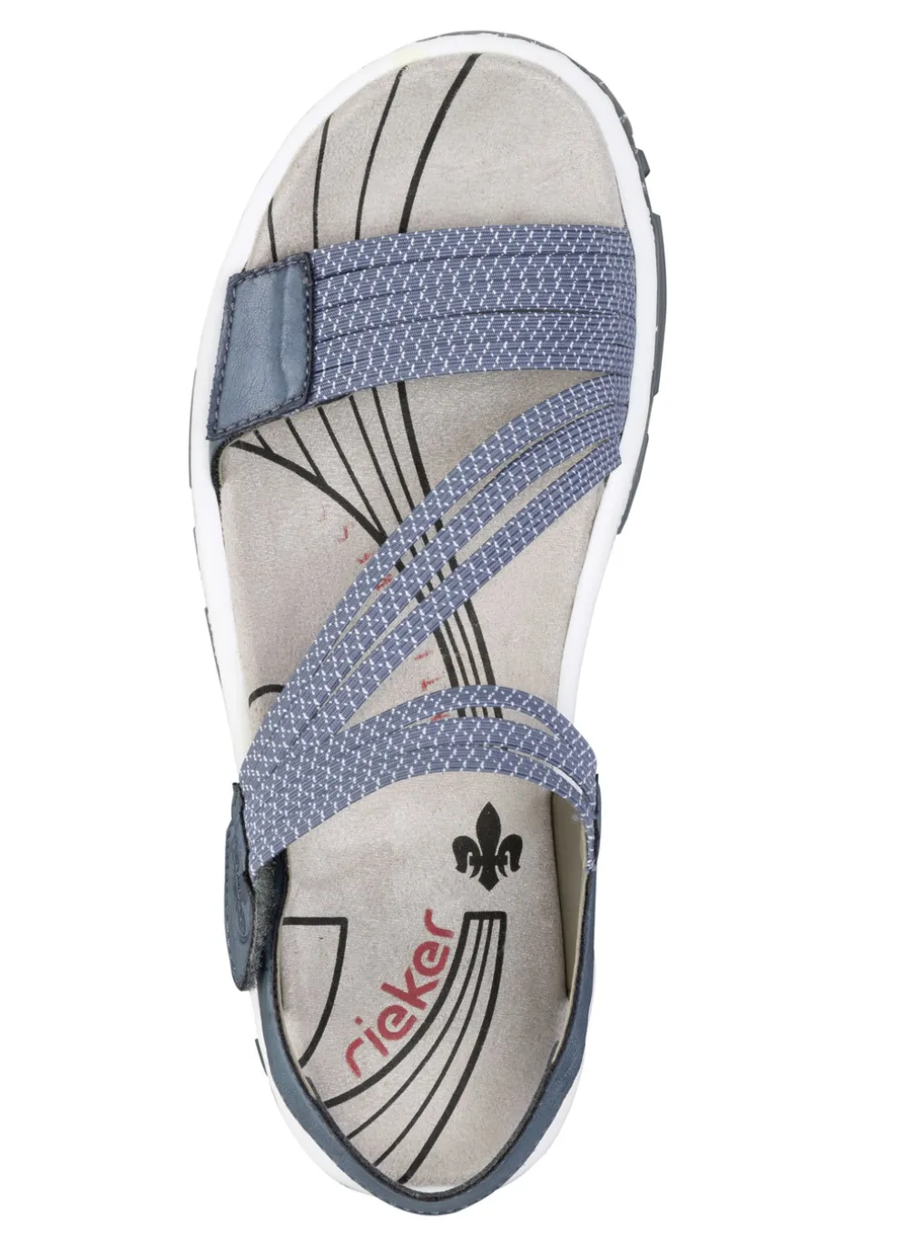 Rieker, sportliche Damen-Sandalen, mit zwei Klettspangen in Blau und in Größe 41.