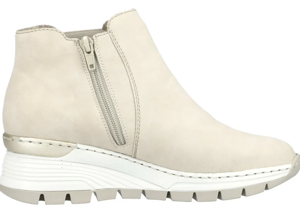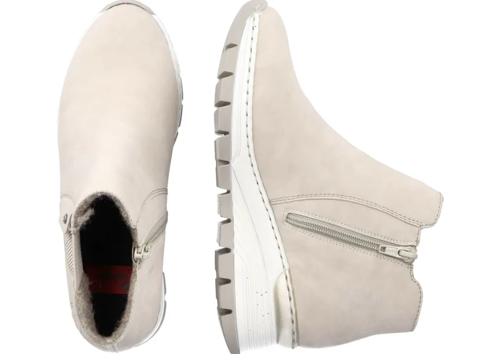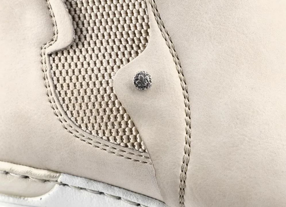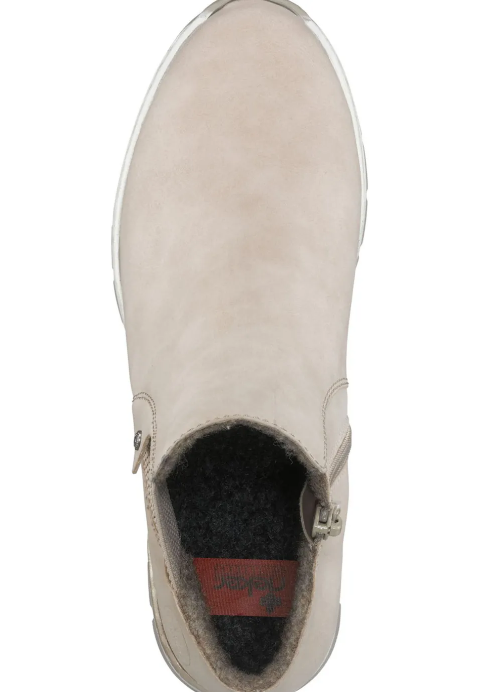 Rieker Stiefelette aus weichem Nubukmaterial in Beige und in Größe 39.