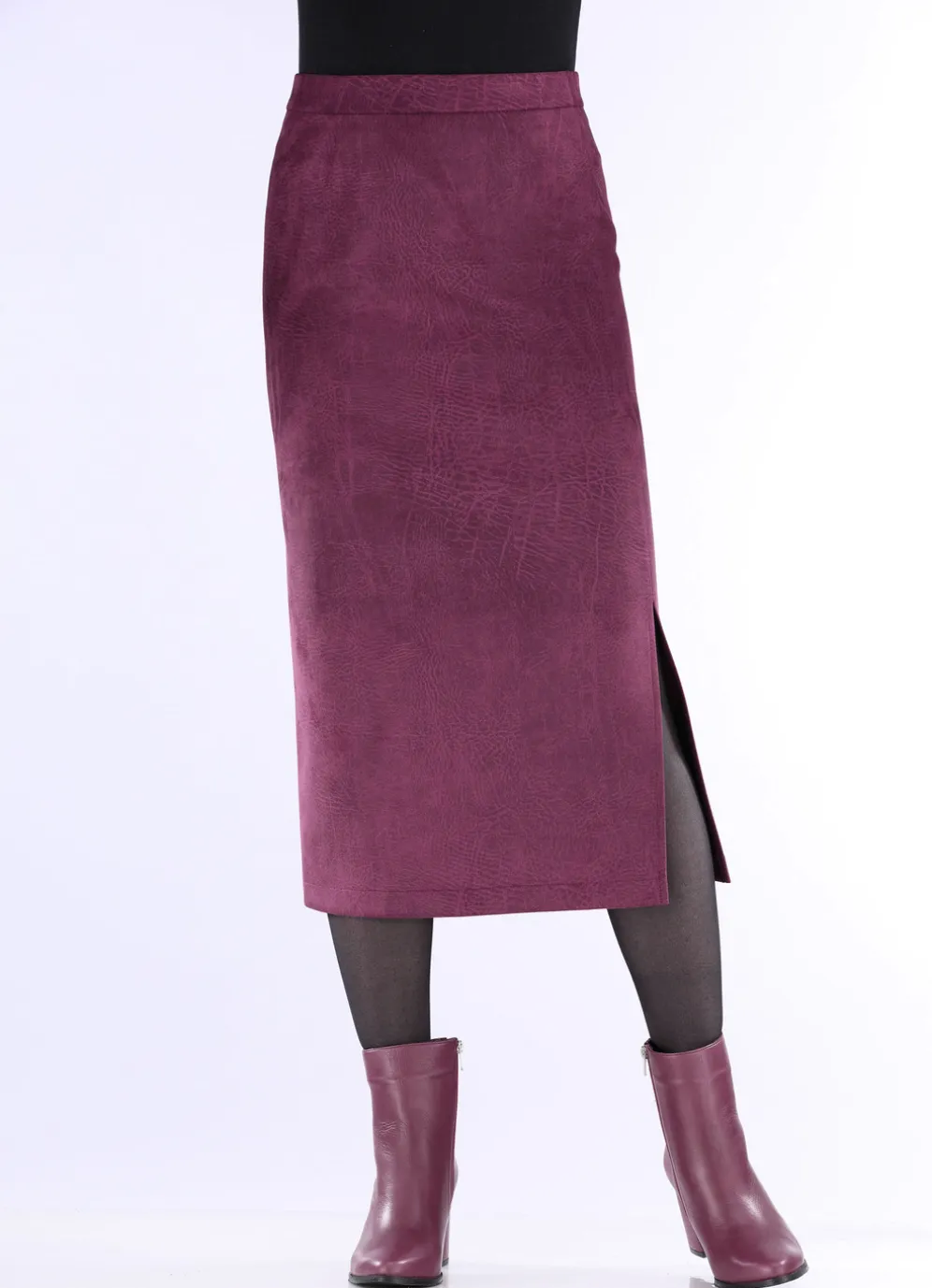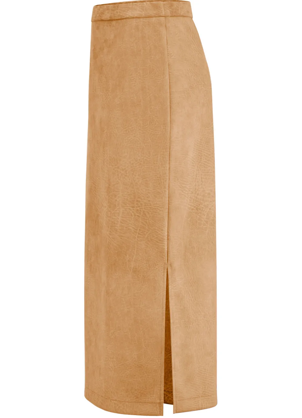 Attraktiver Rock in samtweicher Wildleder-Opitk, schmaler Schnittführung und bequemer Schlupfform: glatt anliegender Rundum-Dehnbund sowie seitlicher Schlitz. Länge ab Taille ca. 76 cm, bei K-Gr. ca. 72 cm. Ungefüttert