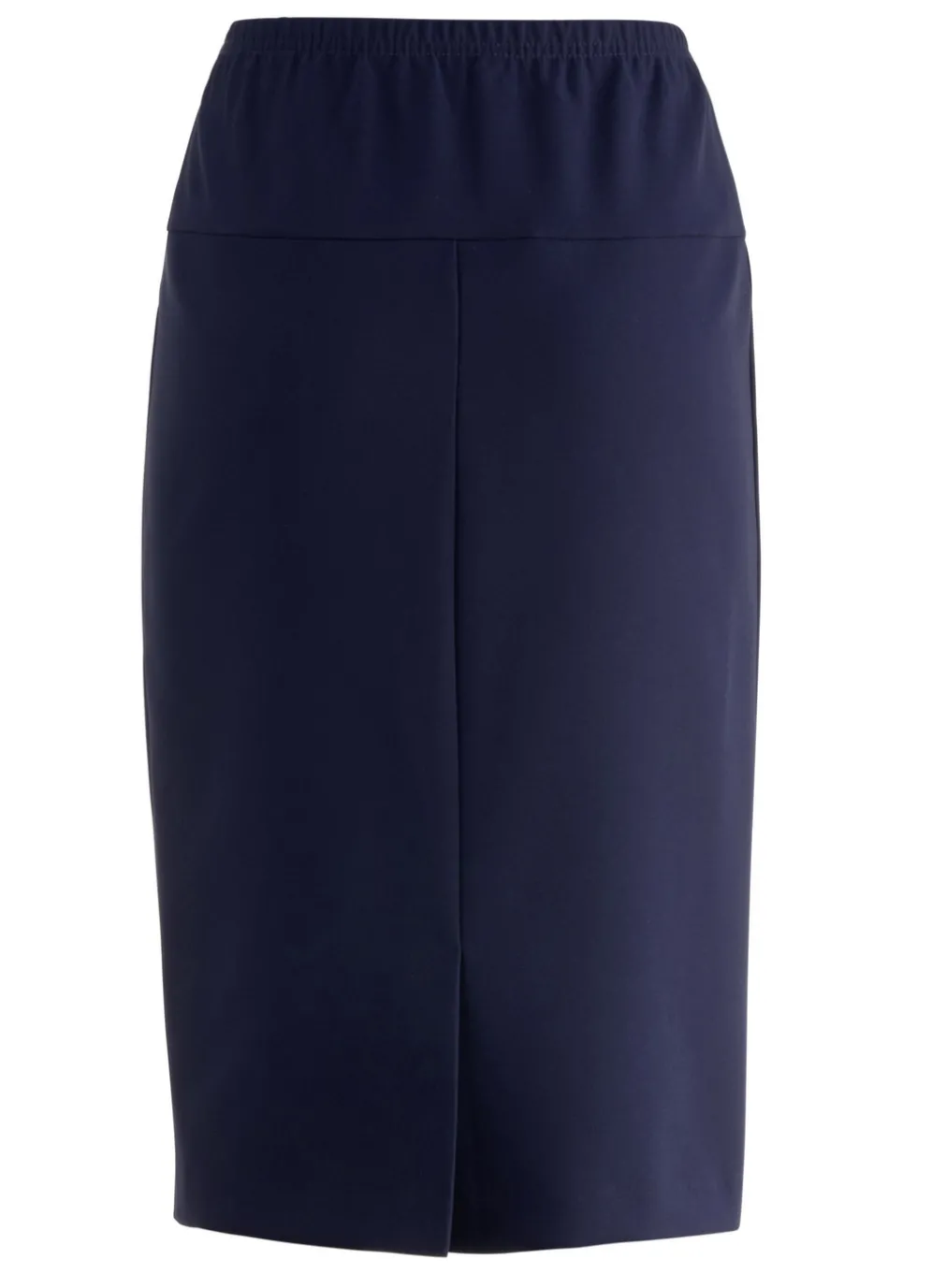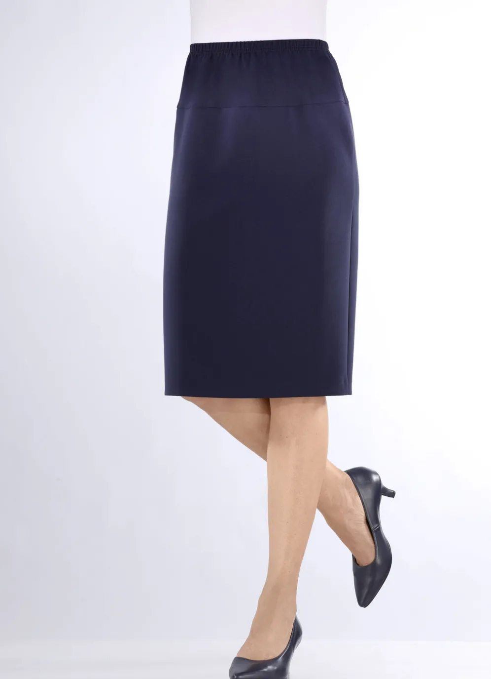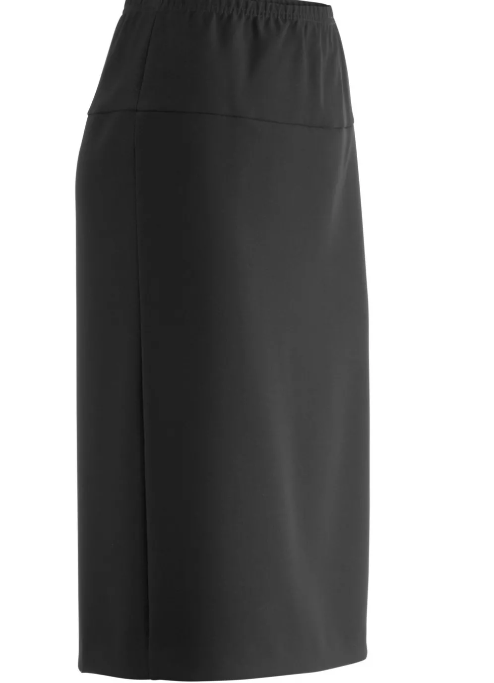Aparter, kombifreundlicher Rock in gerader Schnittführung: Dehnbund rundum, figurgünstige breite Passe sowie verdeckter Gehschlitz im Rückteil. Länge ab Taille ca. 62 cm, ab Gr. 44 ca. 65 cm. Ungefüttert.