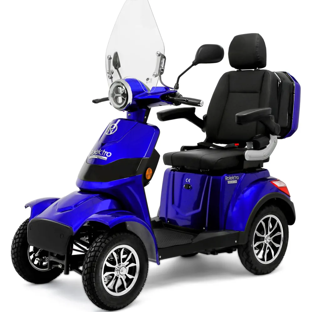 Mit diesem 4-rädrigen Akku-Quad sind Sie komfortabel, sicher und umweltfreundlich unterwegs. Das Akku-Quad bietet älteren Menschen und Personen mit körperlichen Einschränkungen die optimale Lösung, selbstbestimmt und mobil zu bleiben. Mit bürstenlosem 1000 Watt Elektromotor, für den Straßenverkehr zugelassen. Das Akku-Quad verfügt über eine sehr hochwertige Ausrüstung wie beispielsweise Bremslicht, Fernlicht, Blinker, Hupe, LED-Licht, Flaschenhalterung, USB-Ladebuchse, Gehstockhalterung, Topcase, Windschutzscheibe aus Glas sowie Rückspiegel und Gurt. Somit ist eine sichere Teilnahme im Straßenverkehr gewährleistet.