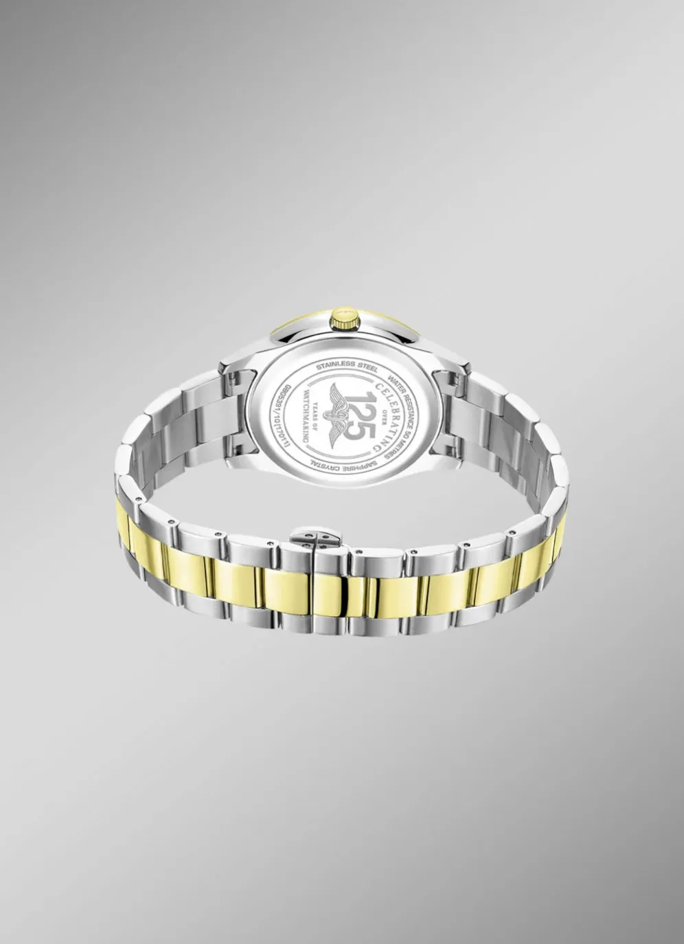 Der von Saphirglas umhüllte Zeitmesser ist eine Hommage an das klassische Design von Armbanduhren und bewahrt gleichzeitig eine schlanke Silhouette. Die von einem präzisen Quarzwerk angetriebene Uhr besticht durch ihr Zifferblatt, das den Reichtum von Gold mit der Zweckmäßigkeit von Edelstahl verbindet. Das dezente zweifarbige Gehäuse verbindet Tradition und moderne Ästhetik nahtlos zu einem zeitlosen Schmuckstück.