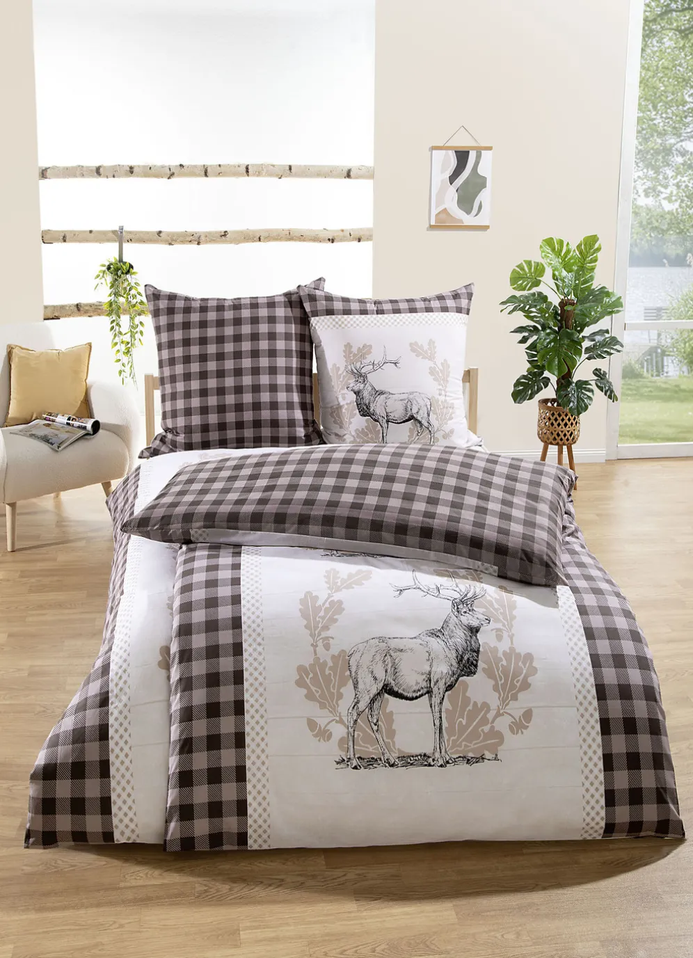 Rustikale Bettwäsche-Garnitur mit Hirsch-Motiv