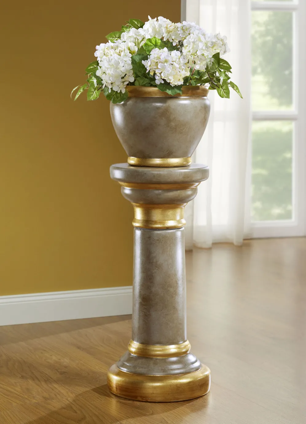 Säule mit Übertopf aus italienischer Keramik in Braun-Gold.