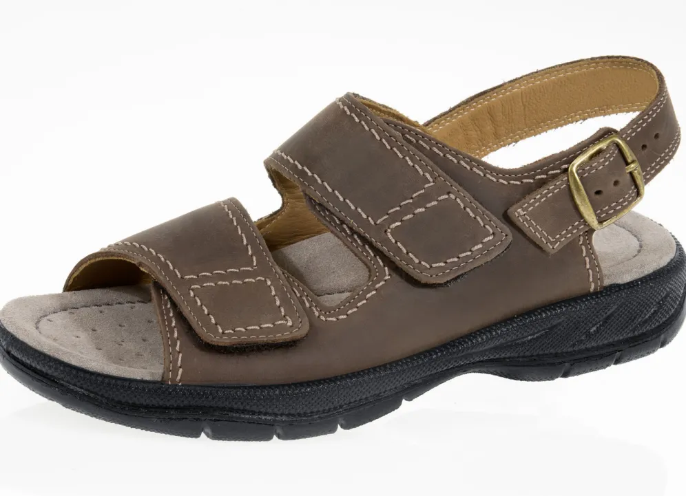 Sandale aus hochwertigem Leder in Braun und in Größe 47.