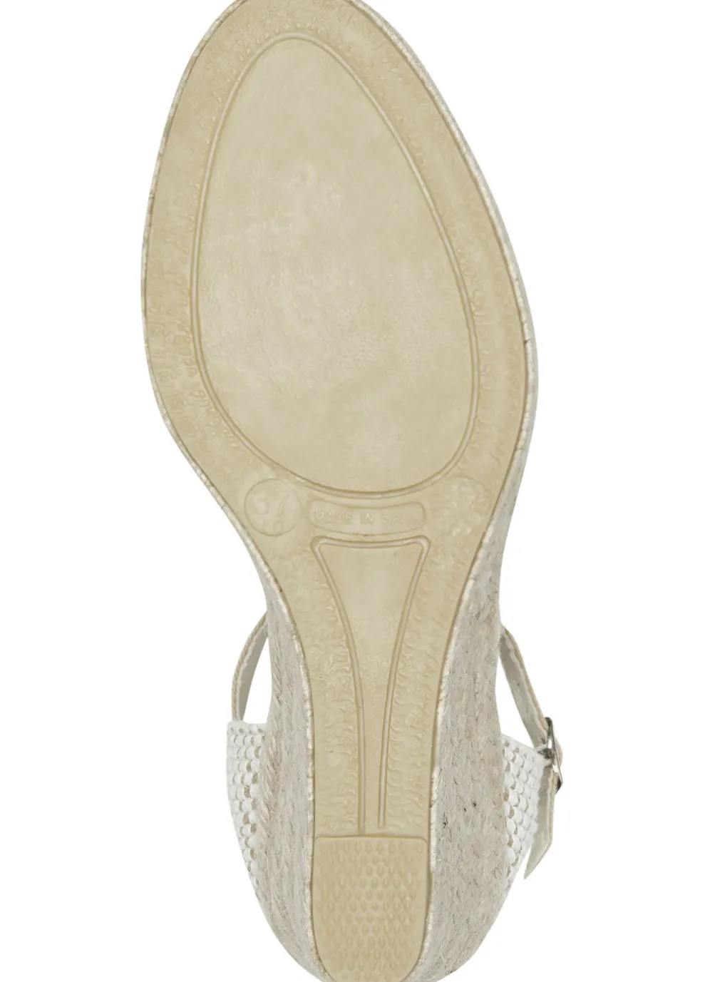 Sandalette aus Textilmaterial in Ecru-Blau und in Größe 38.