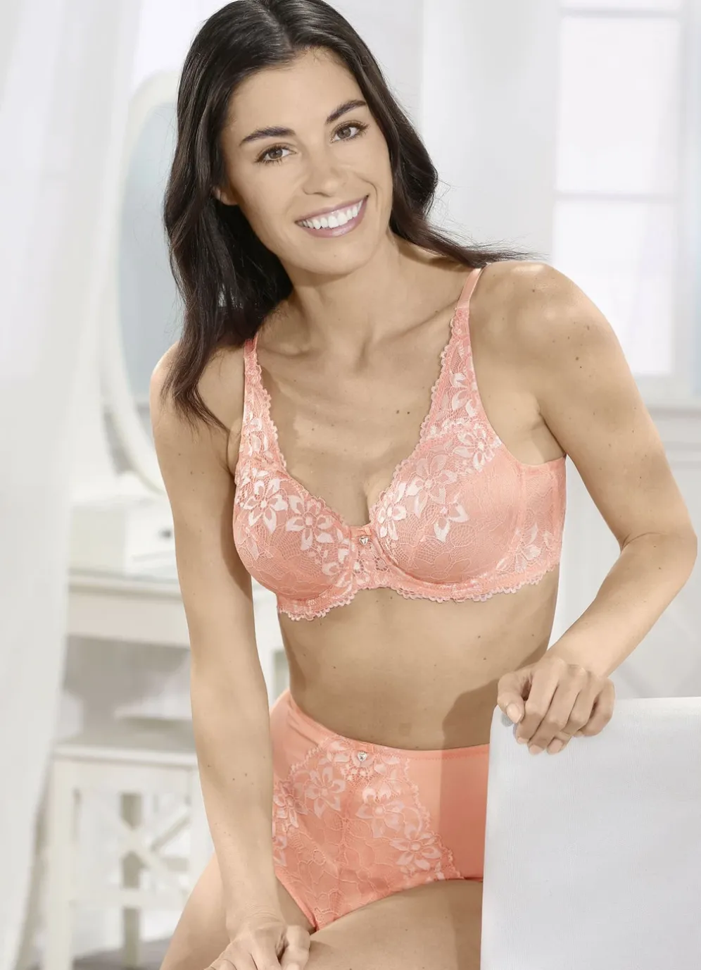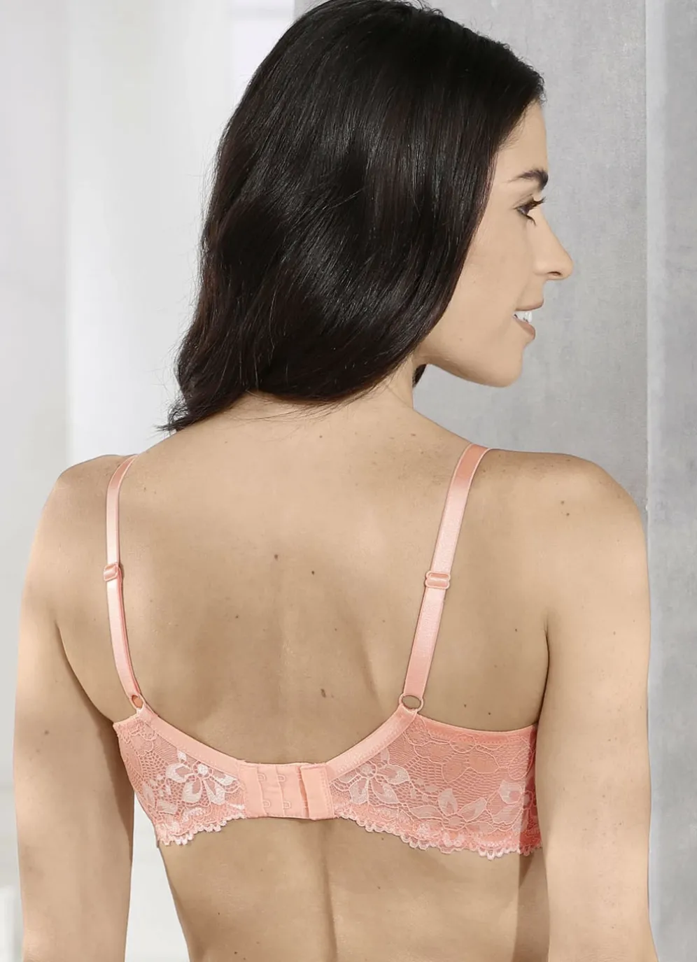 Sassa Bügel-BH aus elastischer Spitze in Cup B, in Pfirsich sowie in Größe 85.