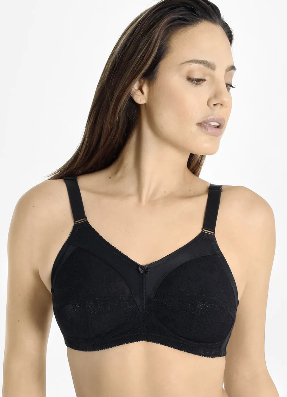 Sanft stützender „Sassa“-BH mit dezent glänzendem Jacquarddessin im Vorderteil, unterlegten Untercups sowie verstellbaren Stretchträgern.