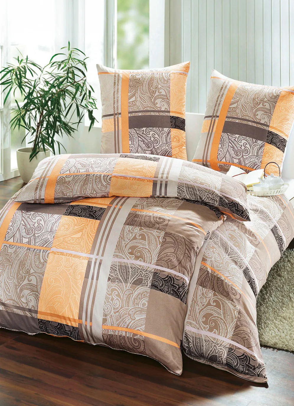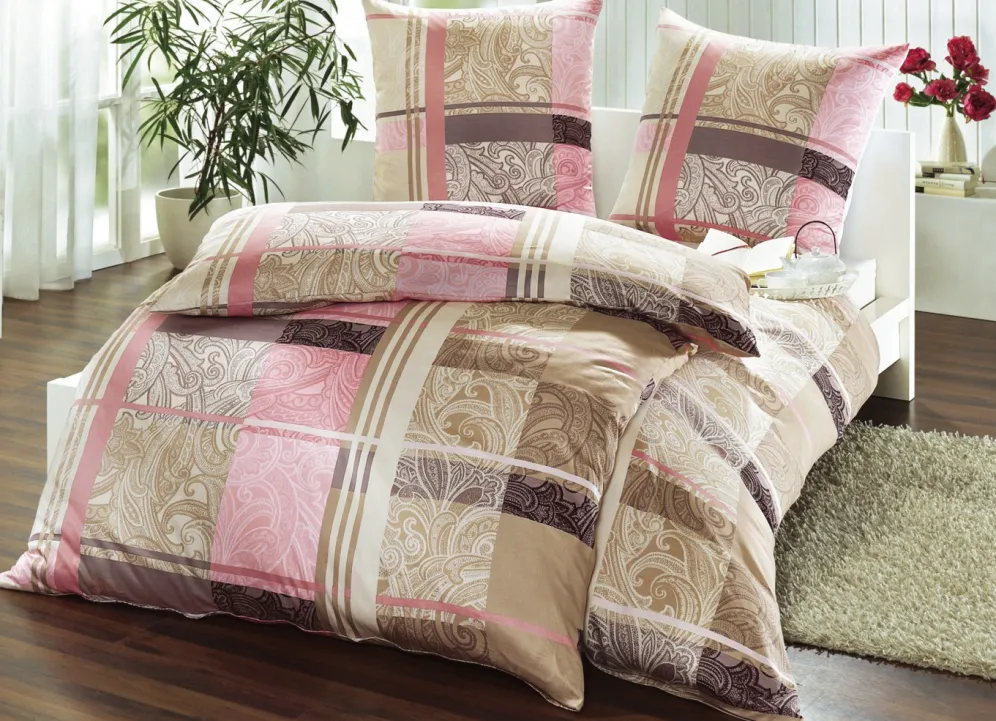 Ein großflächiges Karo-Muster, kombiniert mit einem sehr zarten Paisley-Muster, zeigt sich auf dieser Bettwäsche-Garnitur von „Mesana“ und wirkt in allen 3 Farbkombinationen äußerst geschmackvoll. Mit farblich passendem Reißverschluss gearbeitet. Die herrlich weiche Qualität: Mako-Satin aus 100% Baumwolle. Mit „Sanfor“-Ausrüstung. Waschbar bis 60 °C (Schonwäsche) und trocknergeeignet.