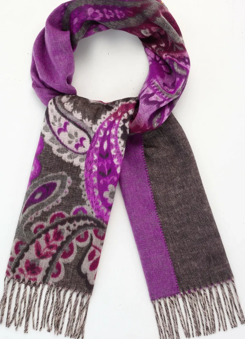 Schal mit Paisleydessin in Zyklam-Titan-Marsala-Schwarz.