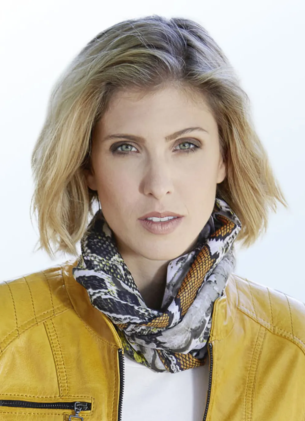 Schal mit Reptildessin in Weiss-Ocker.