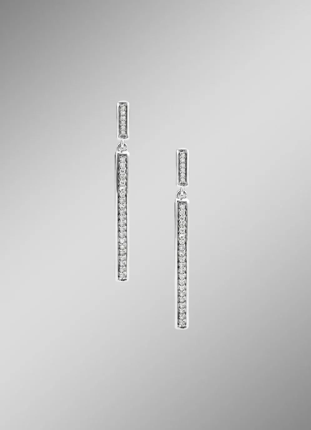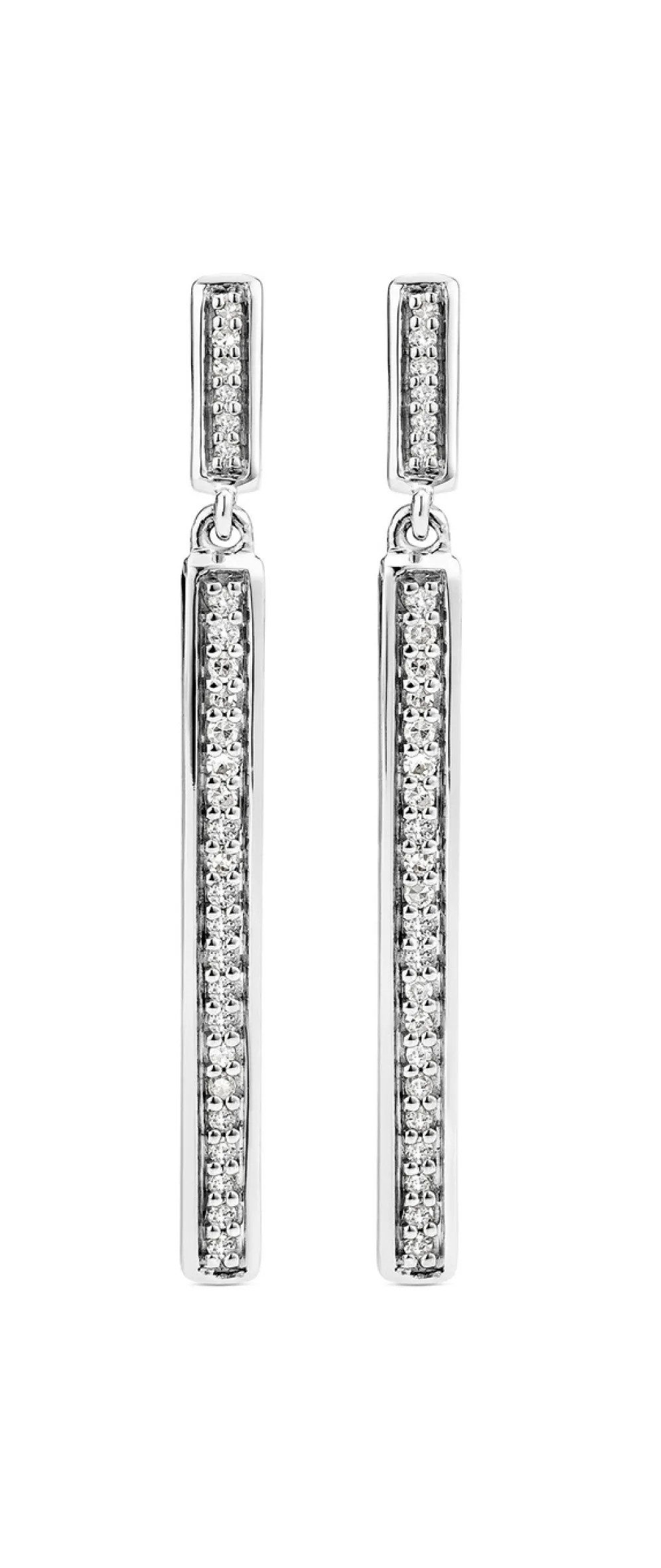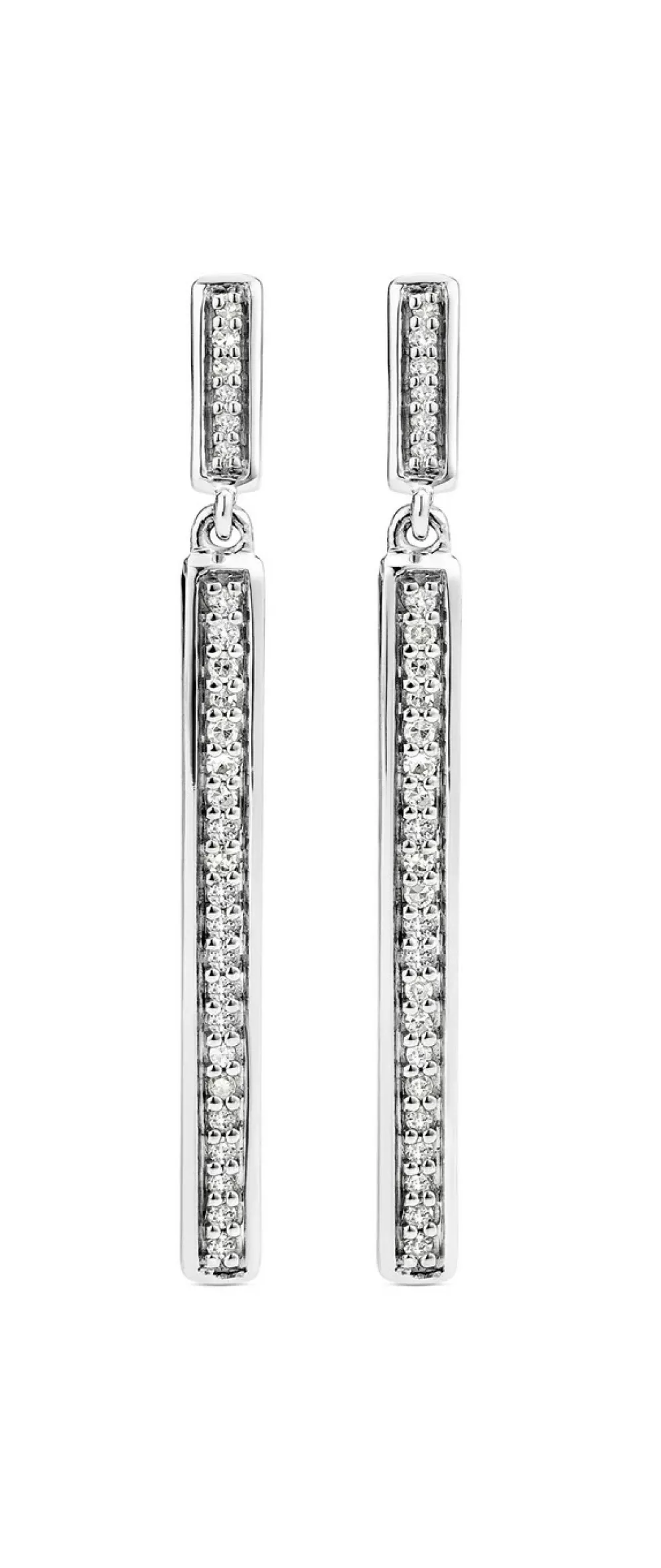 Diese hochwertigen Ohrstecker in edlem Weißgold 585/- fein mit 54 weißen Diamanten sind perfekte für jene Damen, die das Klassische und Stilvolle lieben. Zusammen ca. 0,15 ct. in SI Qualität. Dieser Ohrschmuck ist 29 mm lang und ca. 2,5 mm breit.